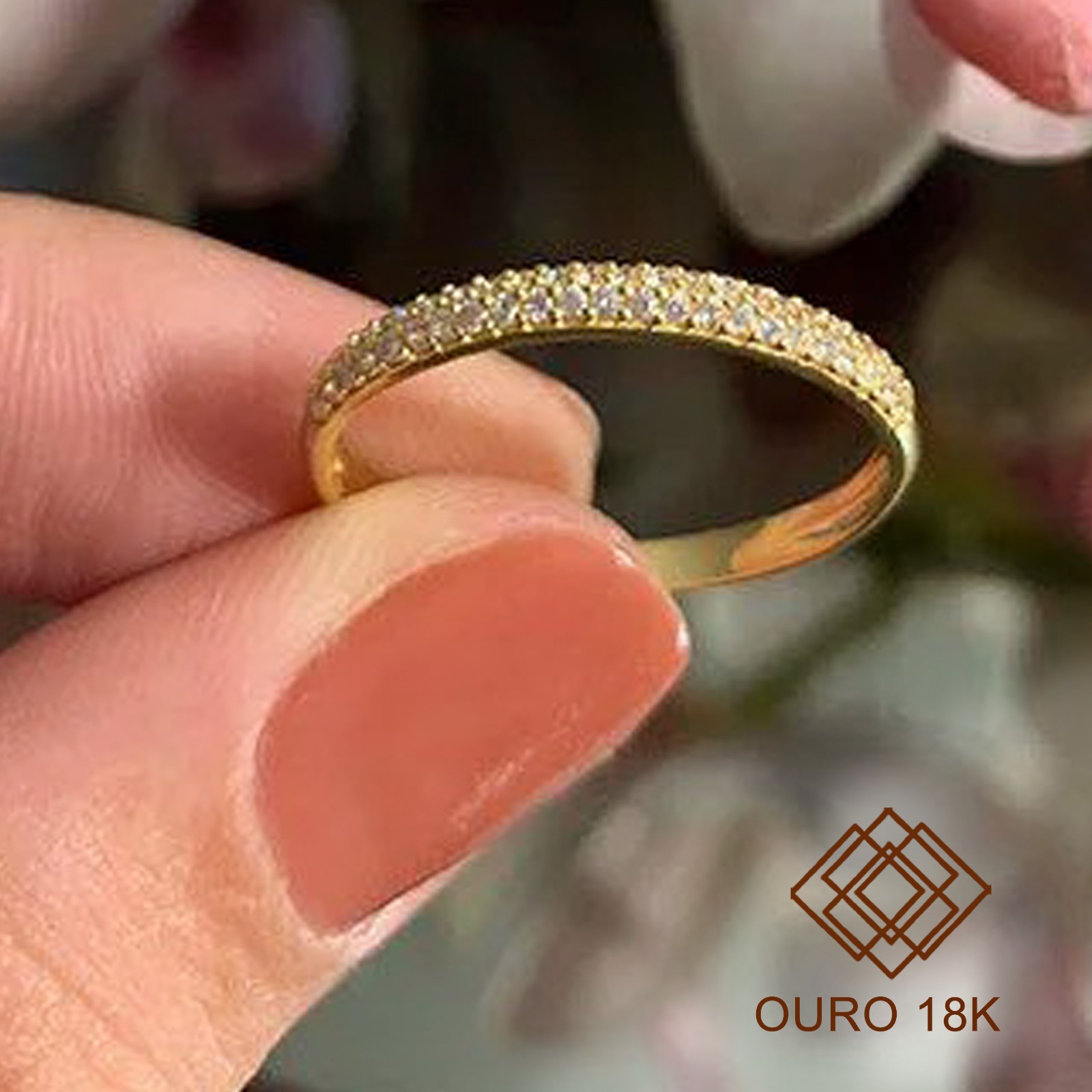 O anel perfeito para quem ama joias confortáveis. Toda a qualidade do ouro 18k em um design aparador, com cravação de zircônias. Invista em uma joia toda em ouro 18k para te acompanhar em todos os momentos, destacando em qualquer composição.