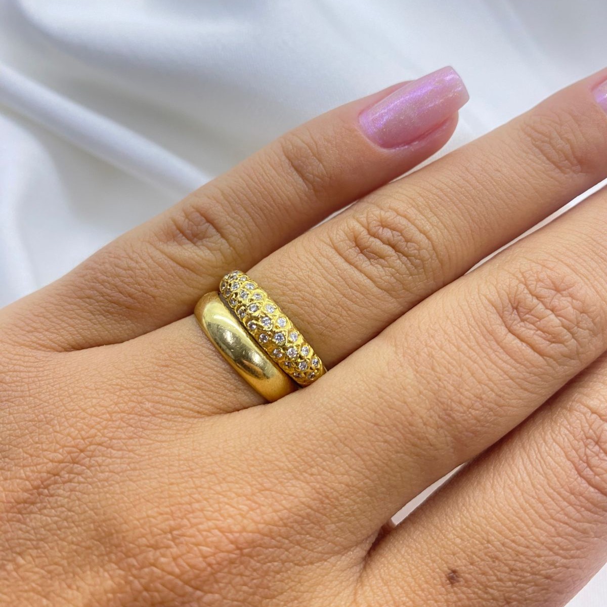 Este design aparador é confeccionado em ouro 18k e cravejado com zircônias. Uma joia única e especial que destaca sua elegância em qualquer composição.
