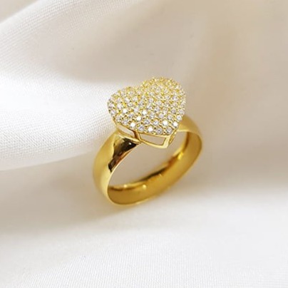 Como este anel, que apresenta formato coração, todo confeccionado em ouro 18k e zircônias. Destacando sua elegância em qualquer composição. Invista neste modelo!