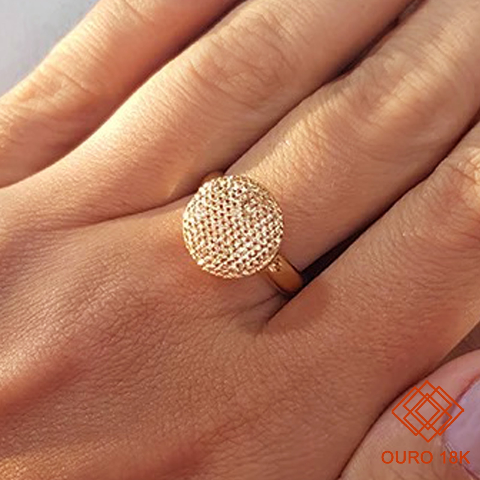 O anel chuveiro em ouro 18k é uma joia atemporal que não pode faltar na sua coleção. Com uma base levemente elevada e acabamento diamantado, esse design icônico combina brilho e elegância em um único acessório.