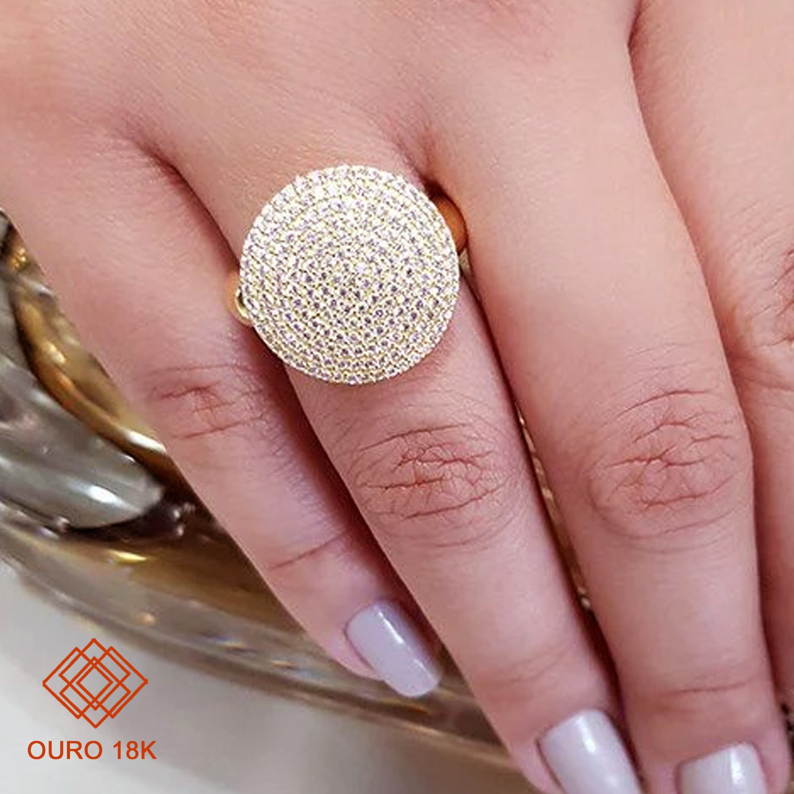 Este modelo apresenta tamanho maior e formato arrendondado, perfeito para quem ama joias robustas e elegantes. Garanta o seu anel chuveiro!