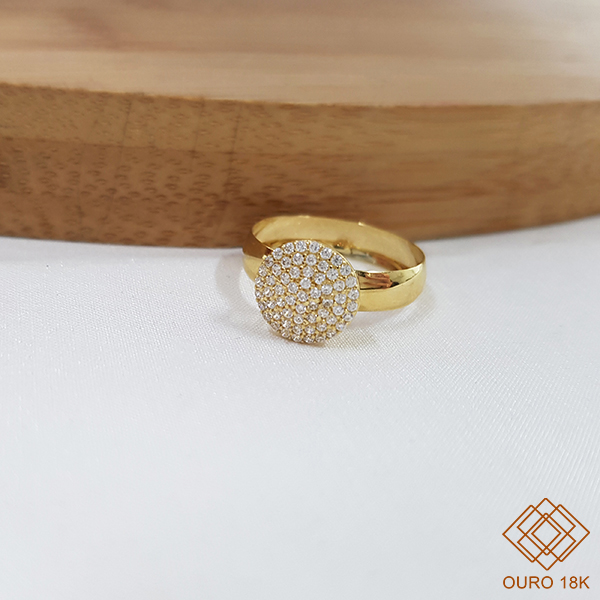 O anel chuveiro em ouro 18k é uma joia atemporal que não pode faltar na sua coleção. Com uma base levemente elevada e cravejada de pedras, esse design icônico combina brilho e elegância em um único acessório.