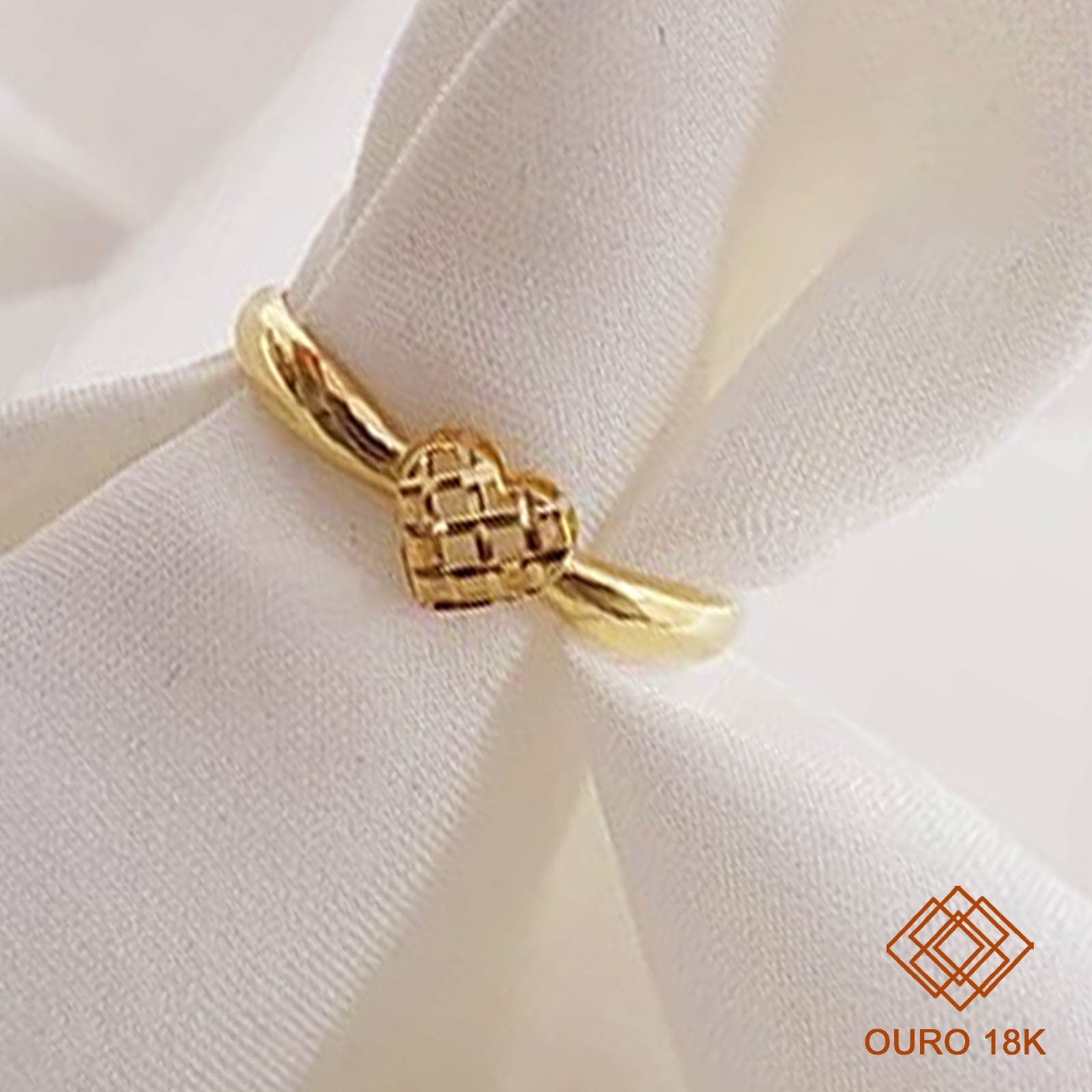 O anel coração em ouro 18k é aquela peça clássica que deve estar presente em sua caixa de joias. Possui o formato de coração com acabamento diamantado, agregando beleza às suas composições.