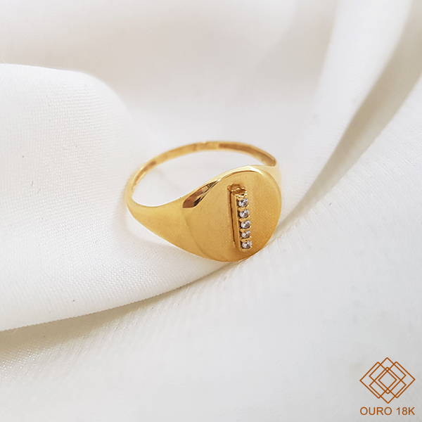 Opção elegante para ser usada no dedinho, confeccionada toda em ouro 18k e cravejada com zircônia.