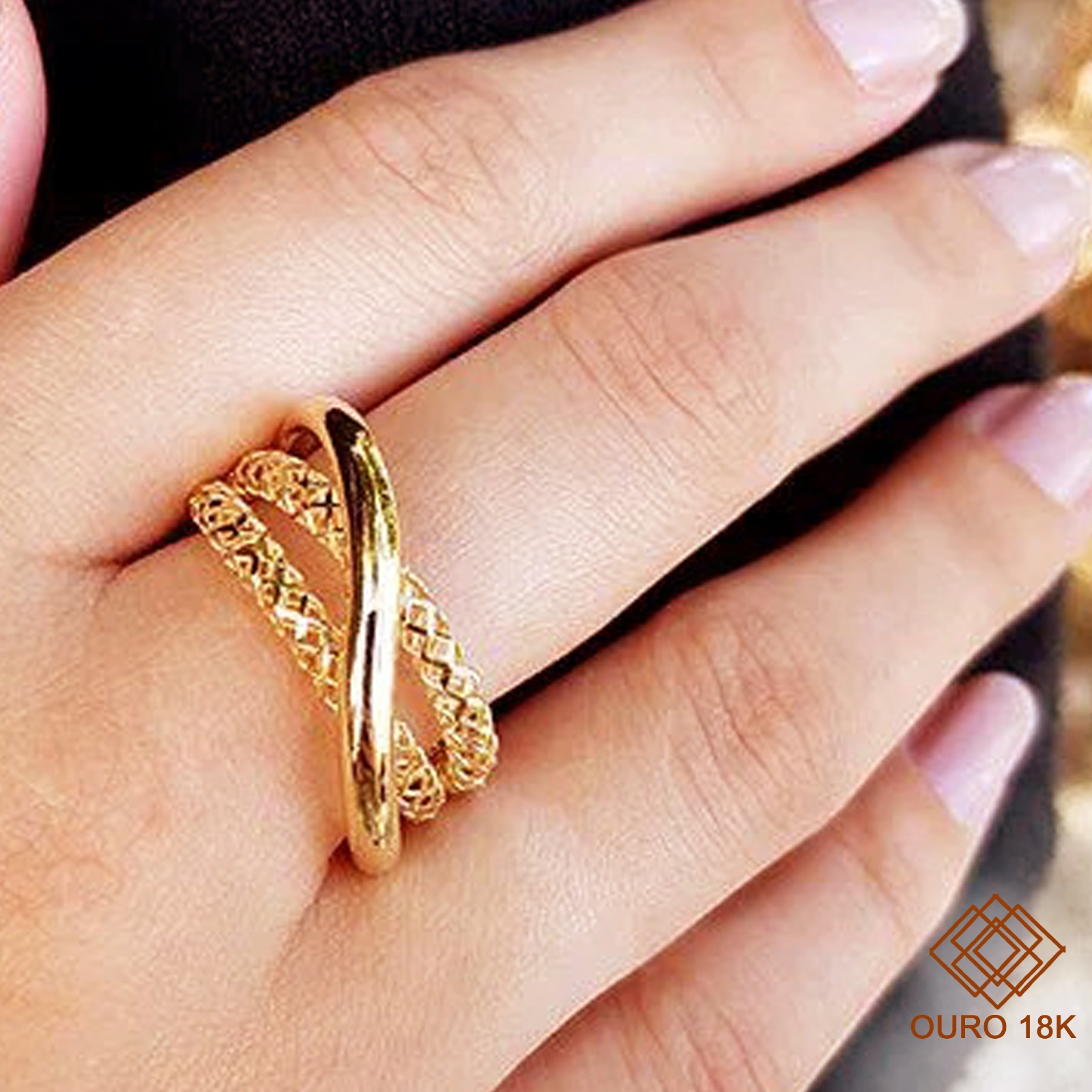 Como este anel, em trama rendada de fios de ouro entrelaçados, resultando em uma joia única e especial. Destacando sua elegância em qualquer composição. Invista neste modelo!