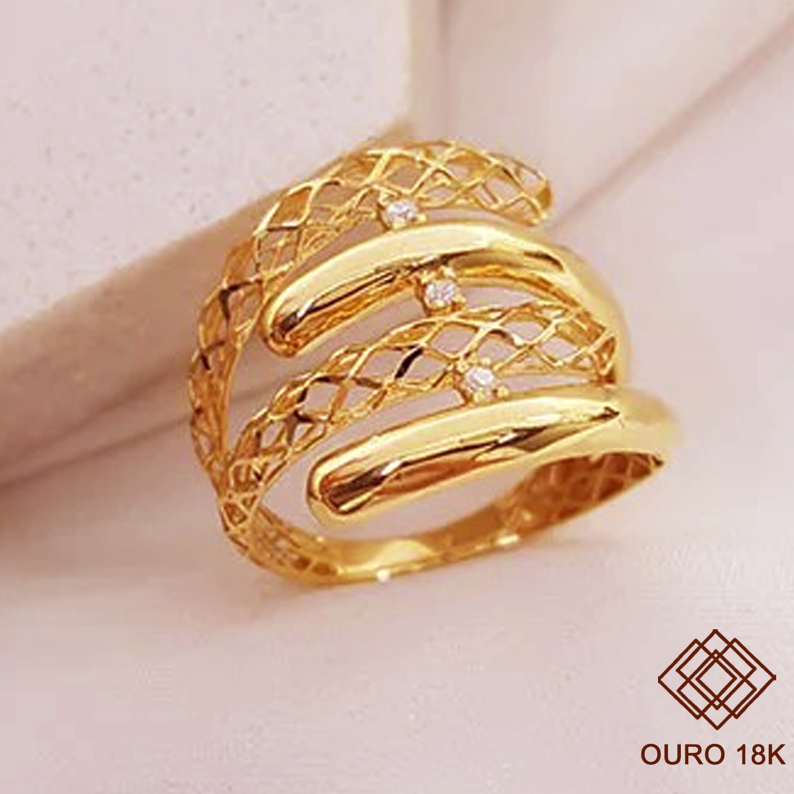 Como este anel, em trama rendada de fios de ouro combinado com toda sofisticação do design liso do ouro, que tornou essa joia única e especial. Destacando sua elegância em qualquer composição. Invista neste modelo!
