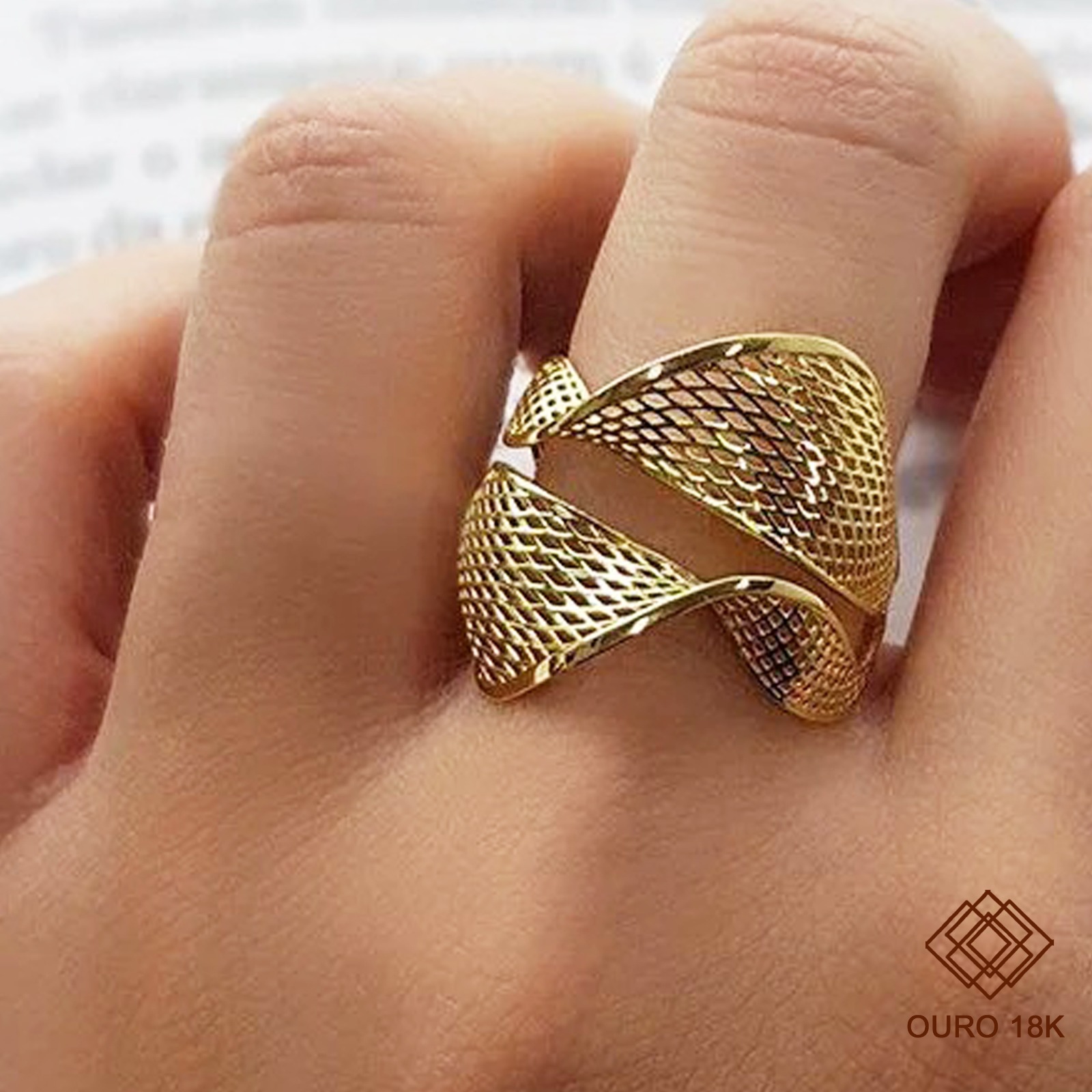Como este anel, em trama rendada de fios de ouro combinado com toda sofisticação e leveza do design curvas tornou essa joia única e especial. Destacando sua elegância em qualquer composição. Invista neste modelo!