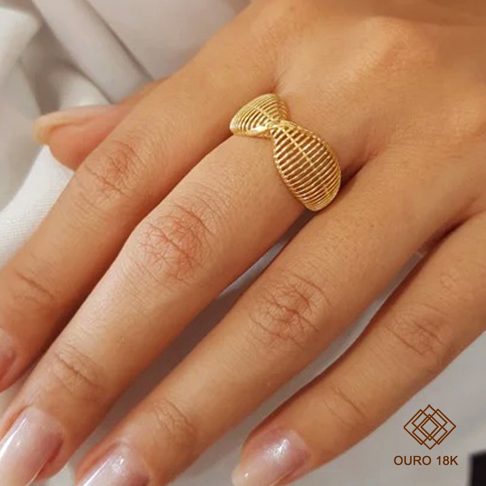 O anel perfeito para quem ama joias robustas e elegantes. Toda a qualidade do ouro 18k em um design com acabamento filgirana, resultando em um modelo moderno que reflete elegância, conforto e resistência.