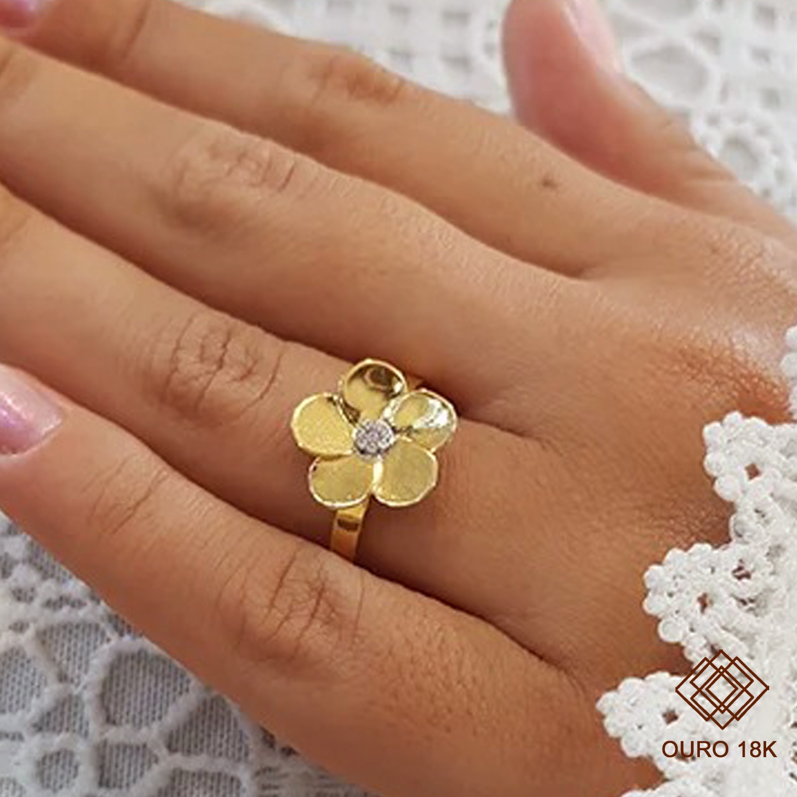 Para quem ama joias delicadas, este anel se torna a escolha perfeita. O design flor, confeccionado em ouro 18k, trazendo beleza e qualidade para as composições do seu dia a dia. Garanta o seu anel flor!