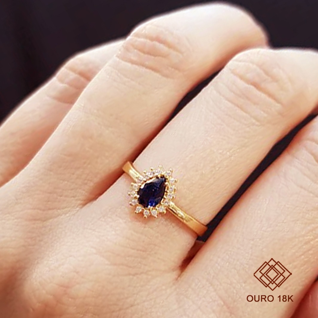 Projetado para representar momentos de conquista, este anel em ouro 18k destaca-se pelo brilho duradouro e acabamento impecável. A pedra em formato gota, envolvida por pedras menores, oferece um design clássico, sem emblemas, valorizando um estilo versátil e sofisticado.