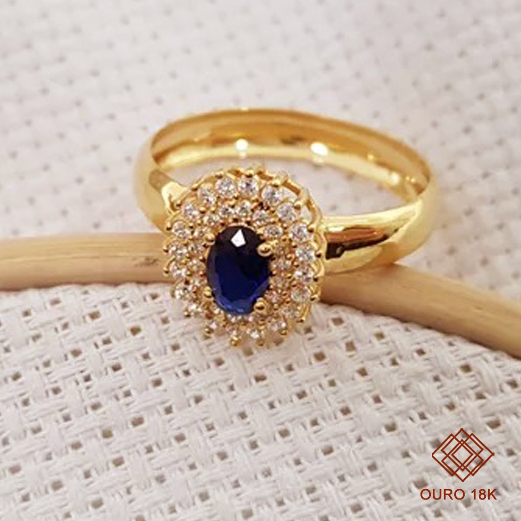 Confeccionado em ouro 18k, o anel oferece brilho duradouro, resistência e acabamento impecável. O contraste entre o tom intenso da pedra central e o brilho das zircônias transmite imponência e elegância, tornando-o uma escolha perfeita para eternizar momentos marcantes.