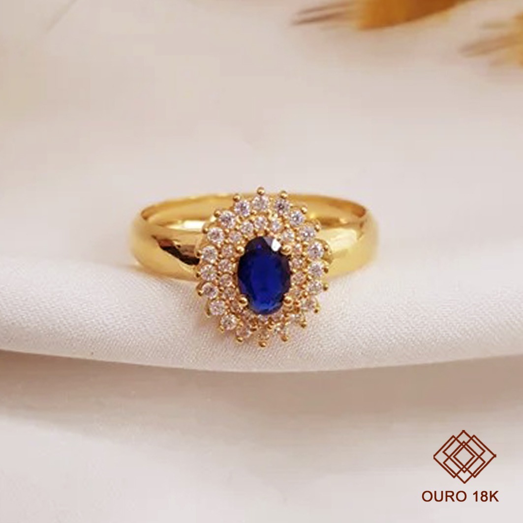 Confeccionado em ouro 18k, o anel oferece brilho duradouro, resistência e acabamento impecável. O contraste entre o tom intenso da pedra central e o brilho das zircônias transmite imponência e elegância, tornando-o uma escolha perfeita para eternizar momentos marcantes.