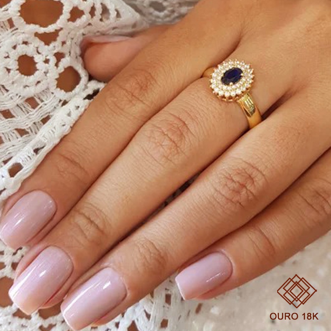 Confeccionado em ouro 18k, o anel oferece brilho duradouro, resistência e acabamento impecável. O contraste entre o tom intenso da pedra central e o brilho das zircônias transmite imponência e elegância, tornando-o uma escolha perfeita para eternizar momentos marcantes.