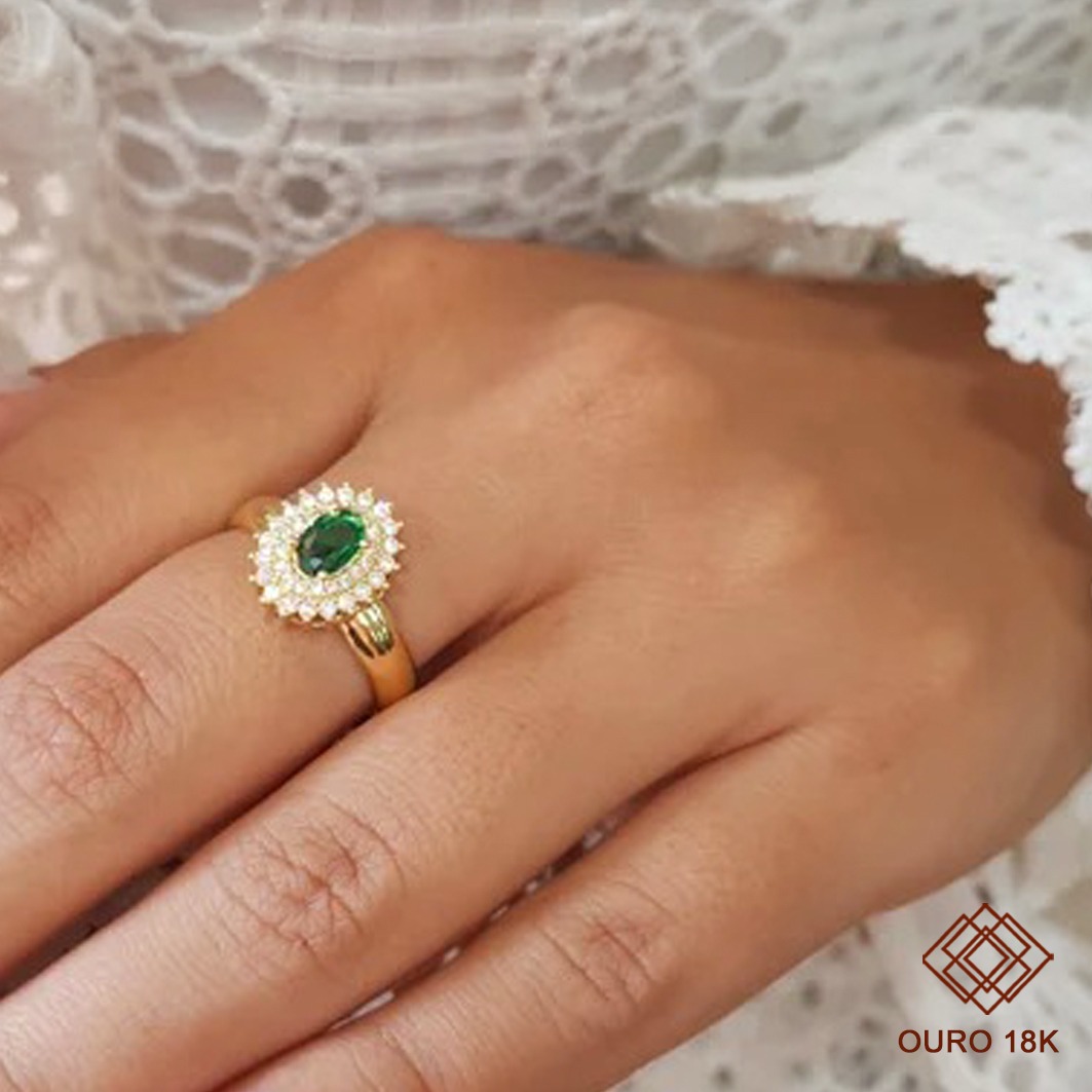 Confeccionado em ouro 18k, o anel oferece brilho duradouro, resistência e acabamento impecável. O contraste entre o tom intenso da pedra central e o brilho das zircônias transmite imponência e elegância, tornando-o uma escolha perfeita para eternizar momentos marcantes.