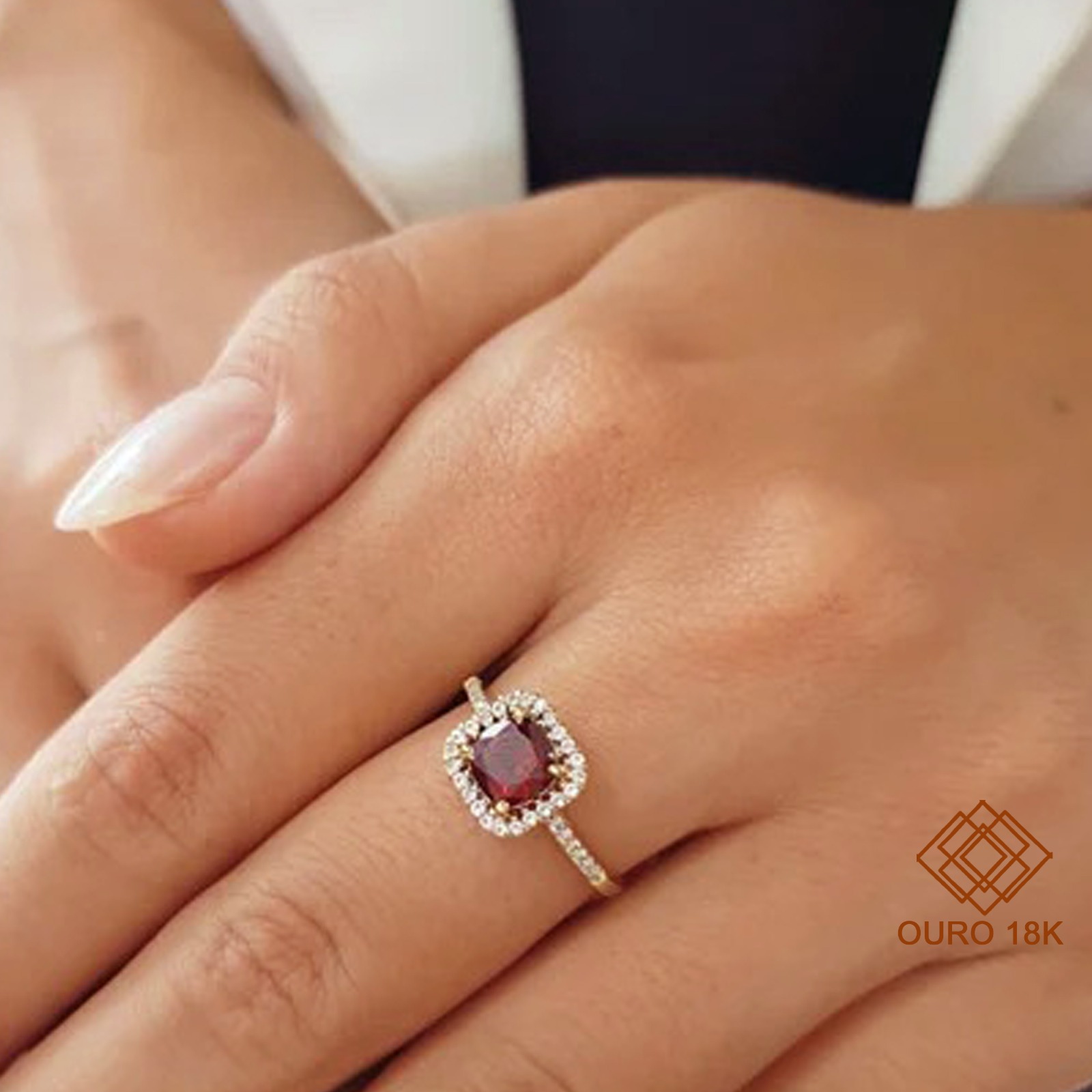 O anel perfeito para quem ama joias modernas e elegantes. Confeccionado em ouro 18k, design alto com cravação de topázio e granada. Invista em uma joia que te acompanha em todos os momentos. Garanta este anel para sua coleção!