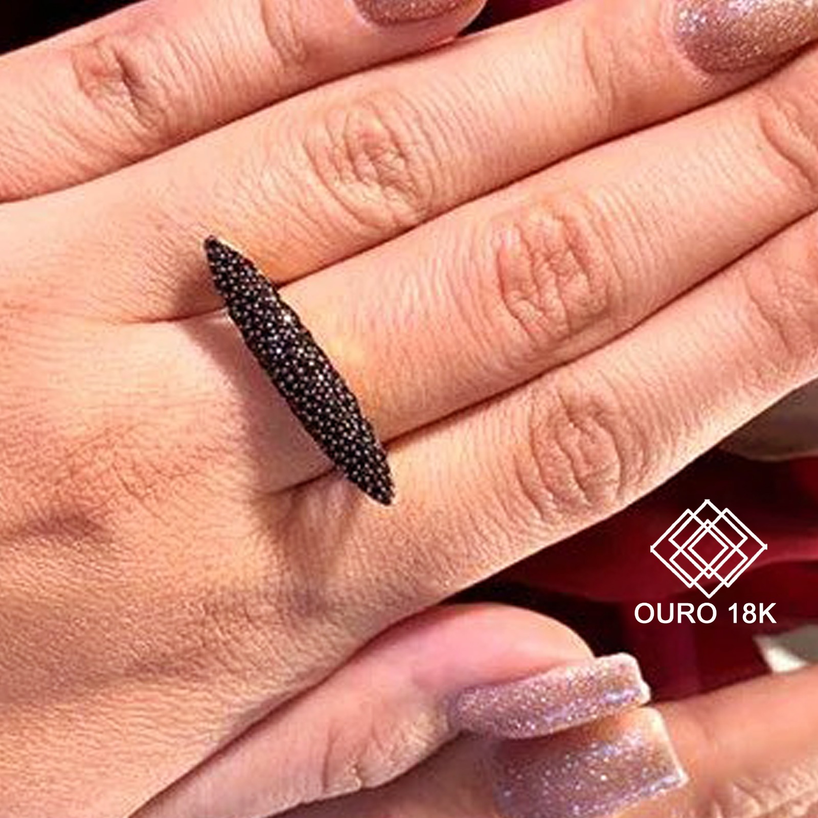 Um anel confeccionado em ouro 18k que se destaca pela sua estrutura. Os modelos pavê trazem inovação e textura às suas produções. Como é o caso deste anel, que proporciona destaque por apresentar uma base alta e cravação de zircônias.