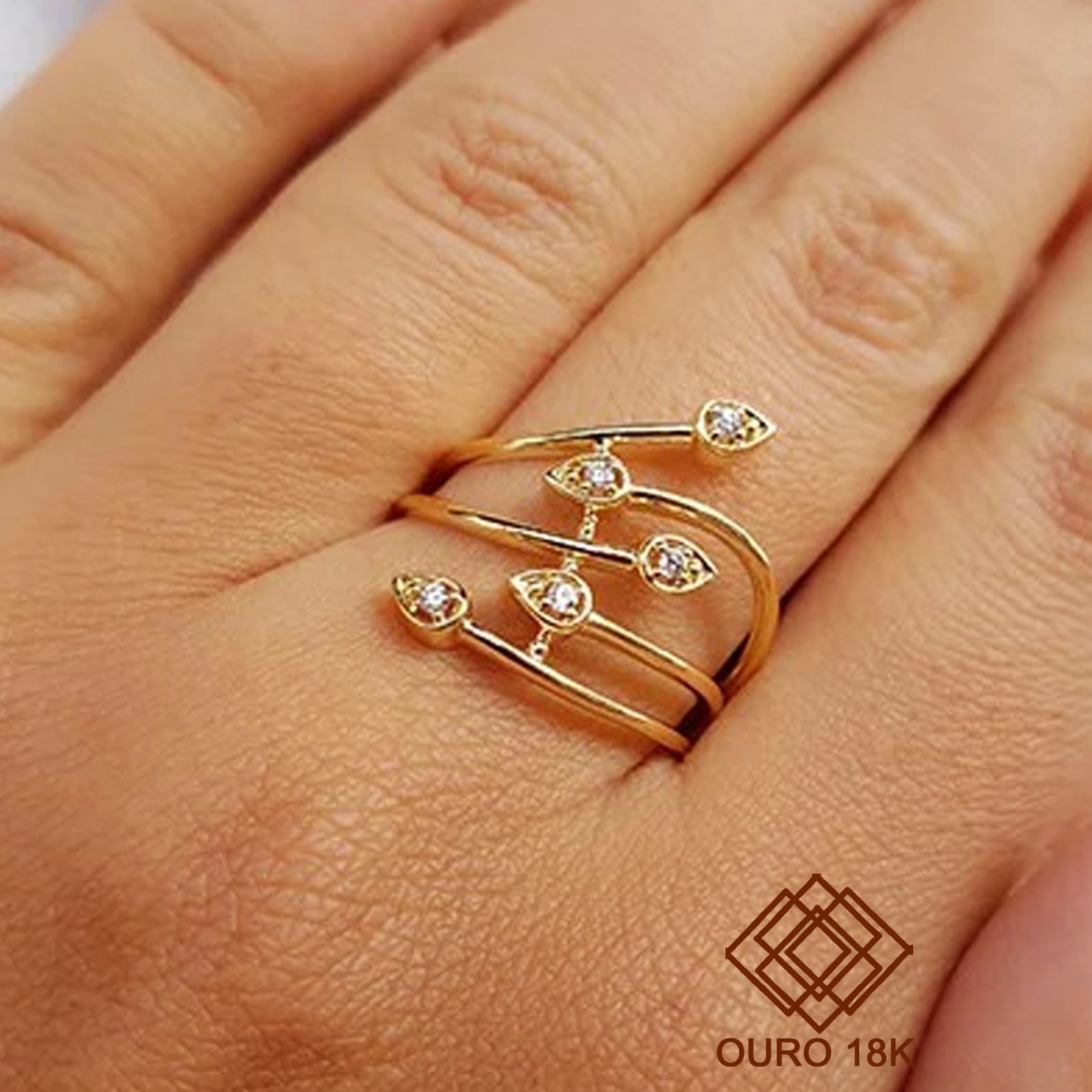 Um anel confeccionado em ouro 18k que se destaca pela sua estrutura.