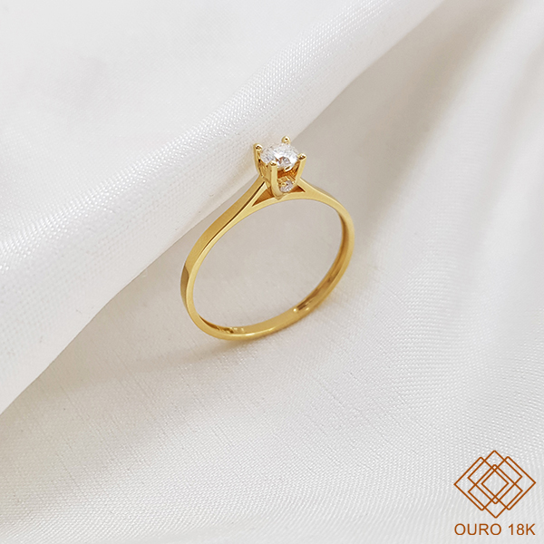 Este design solitário é confeccionado em ouro 18k e cravejado com Brilhante Moissanite de 15 pts. Uma joia única e especial que destaca por seu lindo trabalho em dois aros que traz elegância em qualquer composição.