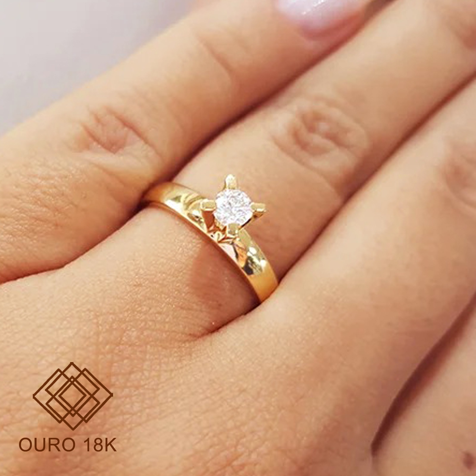 Este design solitário é confeccionado em ouro 18k e cravejado com 1 brilhante Moissanite de 70 pontos. Uma joia única e especial que destaca sua elegância em qualquer composição.