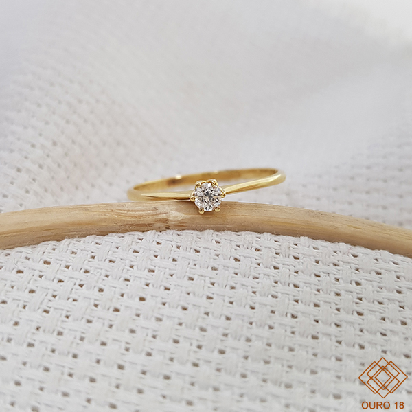 Anel Solitário Ouro 18k Diamante 10pts