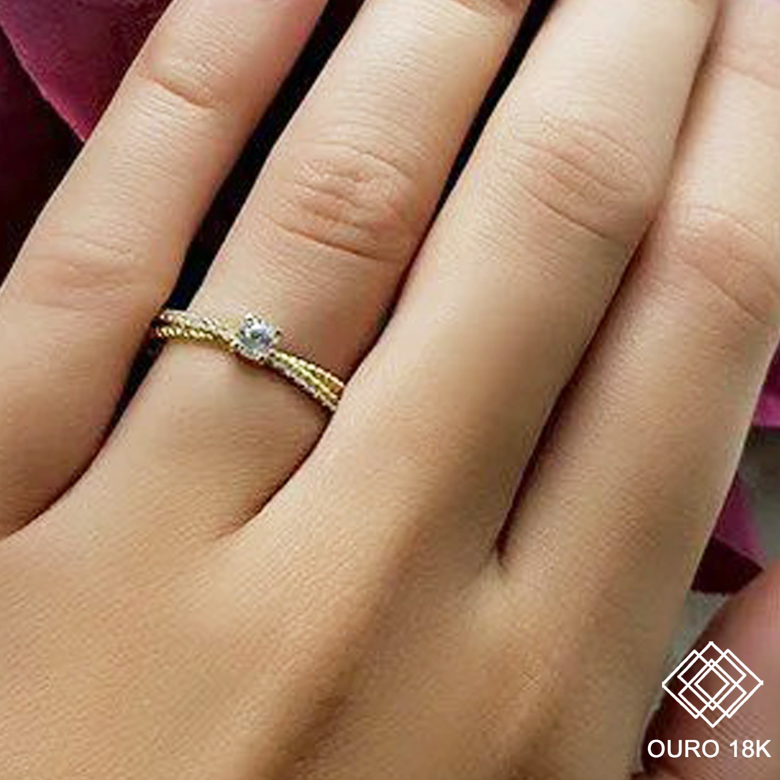 Neste modelo, confeccionado em ouro 18k, a pedra solitária se destaca pelas demais pedras presentes no aro. O solitário é tradicionalmente a escolha perfeita para eternizar os mais belos momentos.