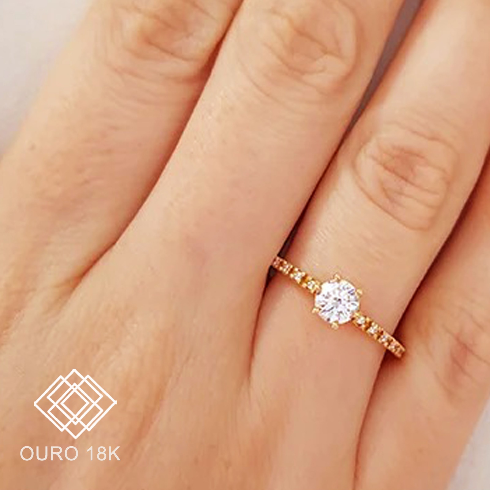 Neste modelo, confeccionado em ouro 18k, a beleza das zircônias são destaque. O solitário é tradicionalmente a escolha perfeita para eternizar os mais belos momentos.