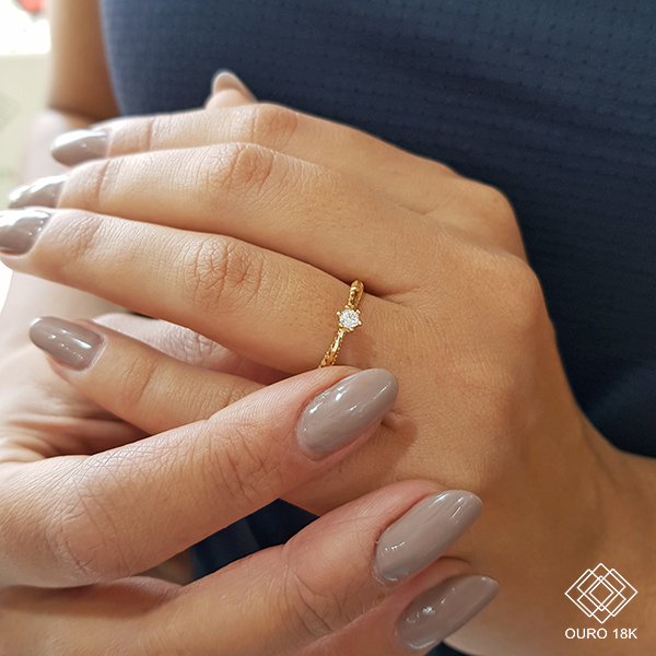 Design delicado, anel confeccionado em ouro 18k e cravejado com zircônias. Uma joia para te acompanhar em seus melhores momentos.