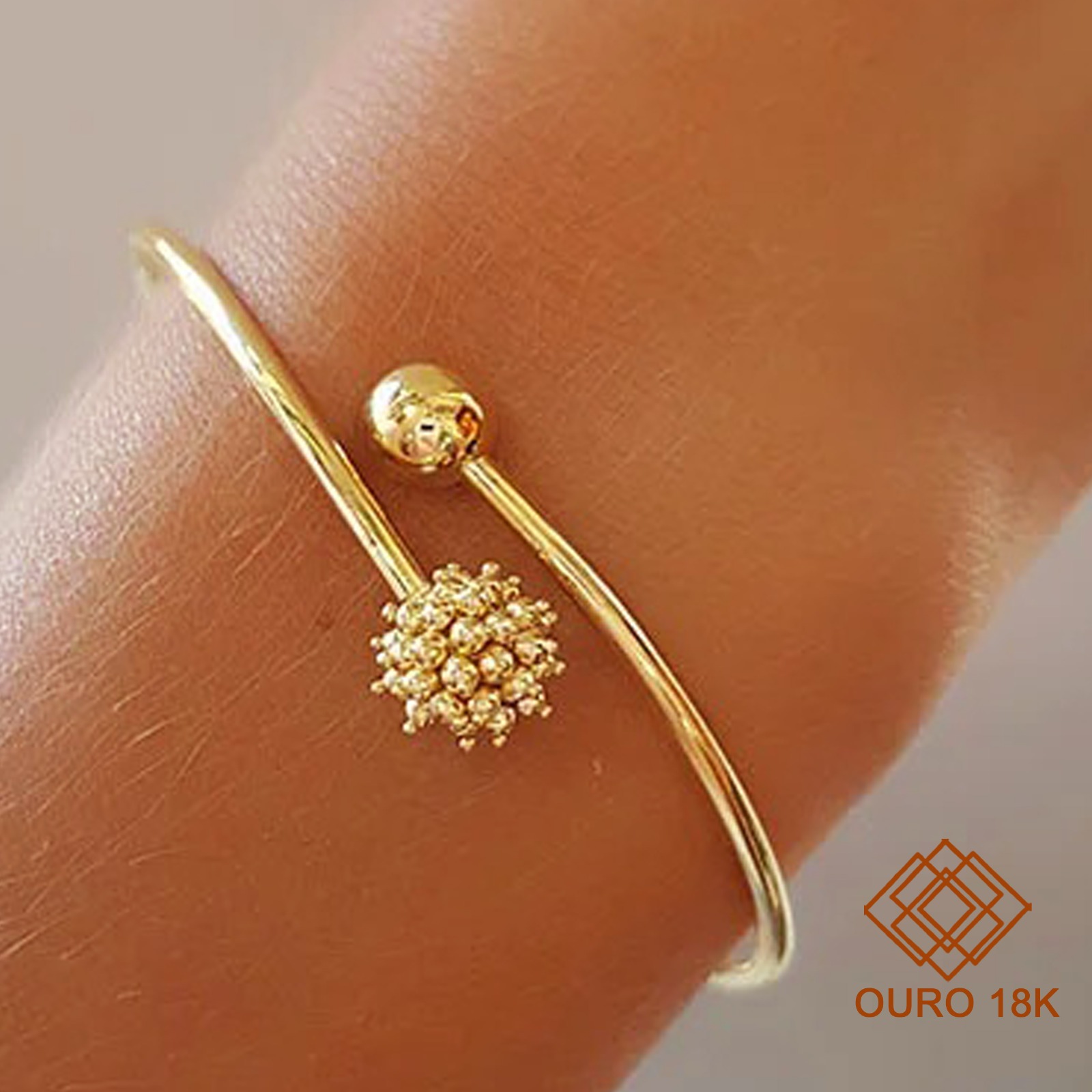 Este design se destaca por possuir esferas em distintos acabamentos e trabalhos em suas extremidades. Uma joia rica em detalhes.
