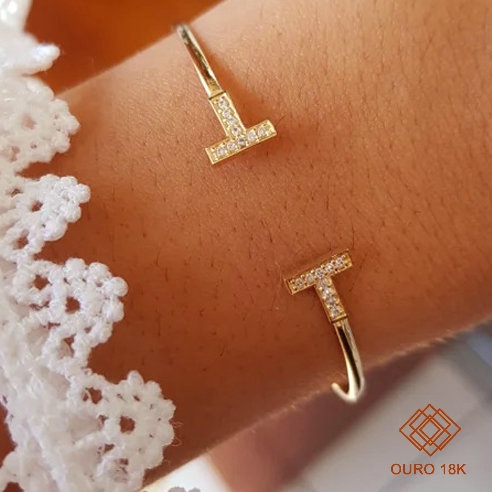 O bracelete é um acessório que transmite muita beleza, modernidade, poder e elegância. Este design se destaca pelo formato geométrico de "T". Uma joia rica em detalhes, cravejada com zircônias.