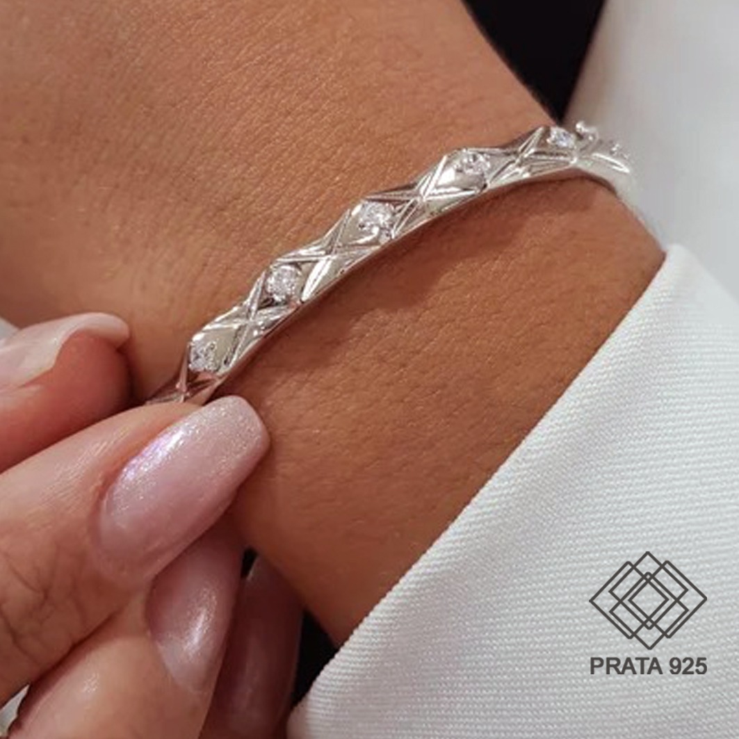 Confeccionado em prata 925, oferece durabilidade, resistência e acabamento polido de alto padrão. A combinação da estrutura leve com o brilho das pedras resulta em um acessório versátil, que valoriza o pulso com discrição e elegância.