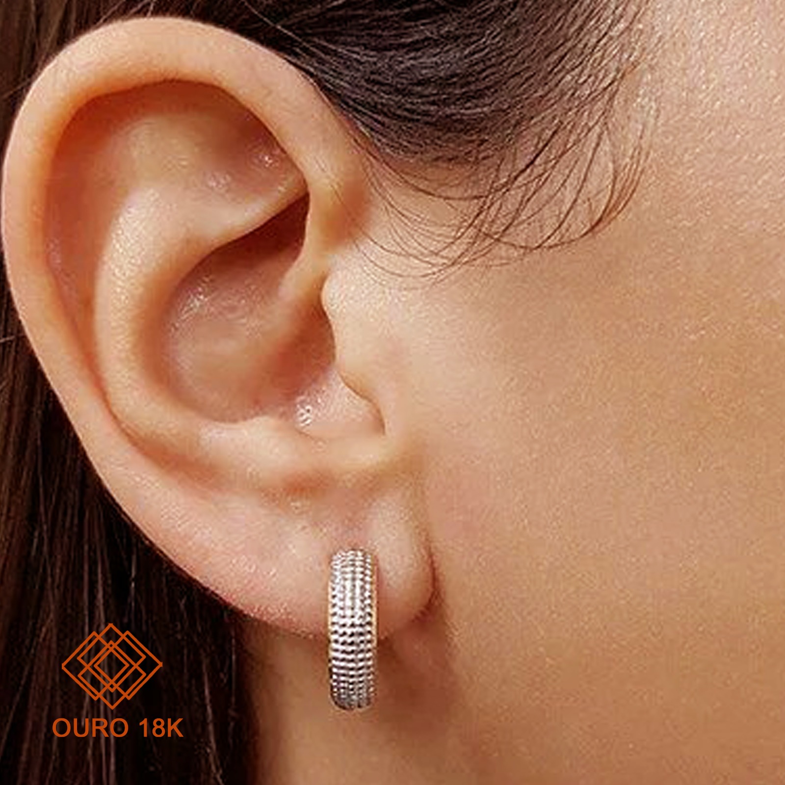 Brinco argola, confortável e antialérgico, perfeito para te acompanhar em todas atividades do seu dia a dia. Um design clássico confeccionado em ouro 18k, com delicado trabalho em relevo e na parte de trás um lindo trabalho vazado no recorte de corações, se torna uma peça versátil e valoriza suas composições. Garanta o seu brinco argola!
