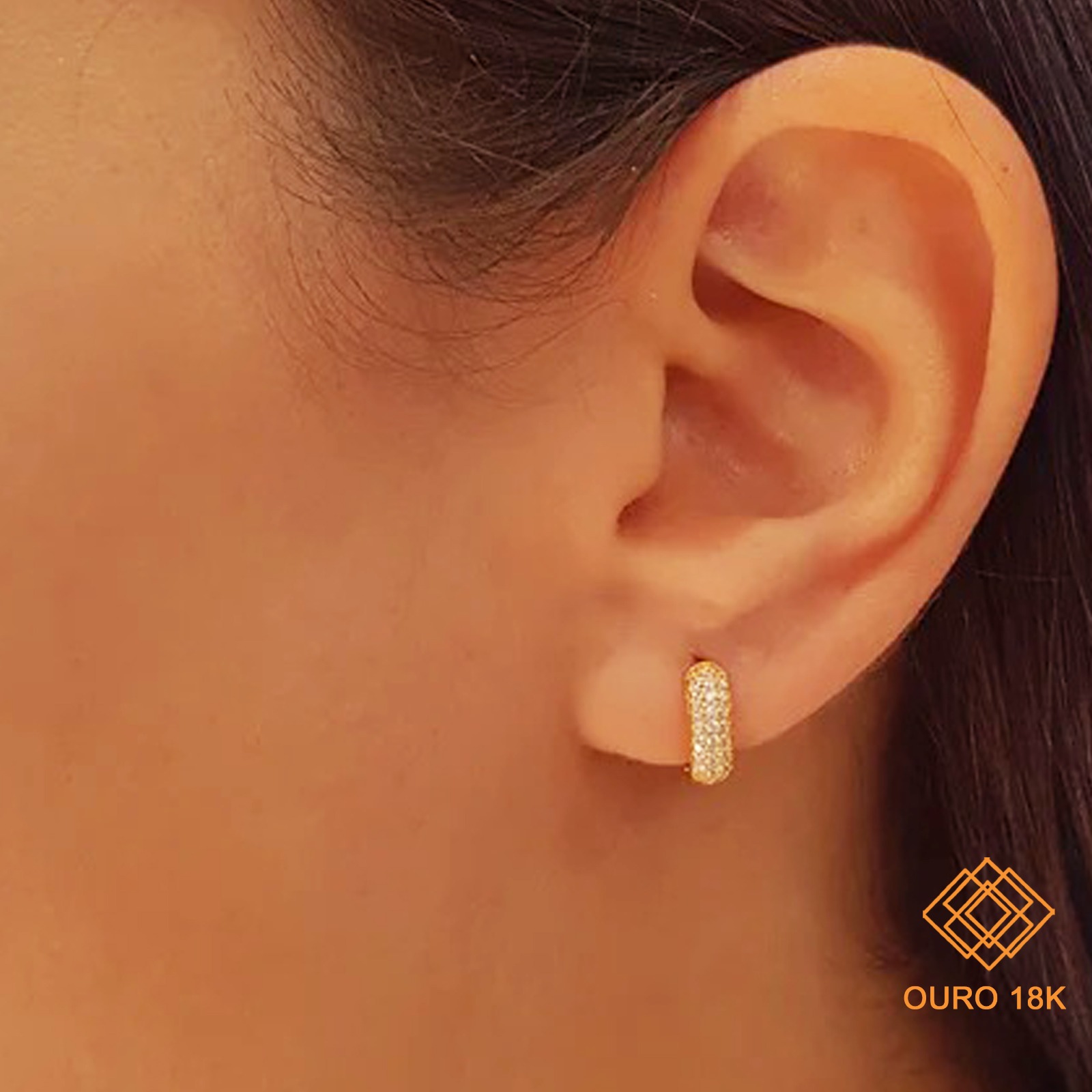 Brinco design argola, confortável e antialérgico, perfeito para te acompanhar em todas as atividades do seu dia a dia. Desfrute da qualidade do ouro 18k!