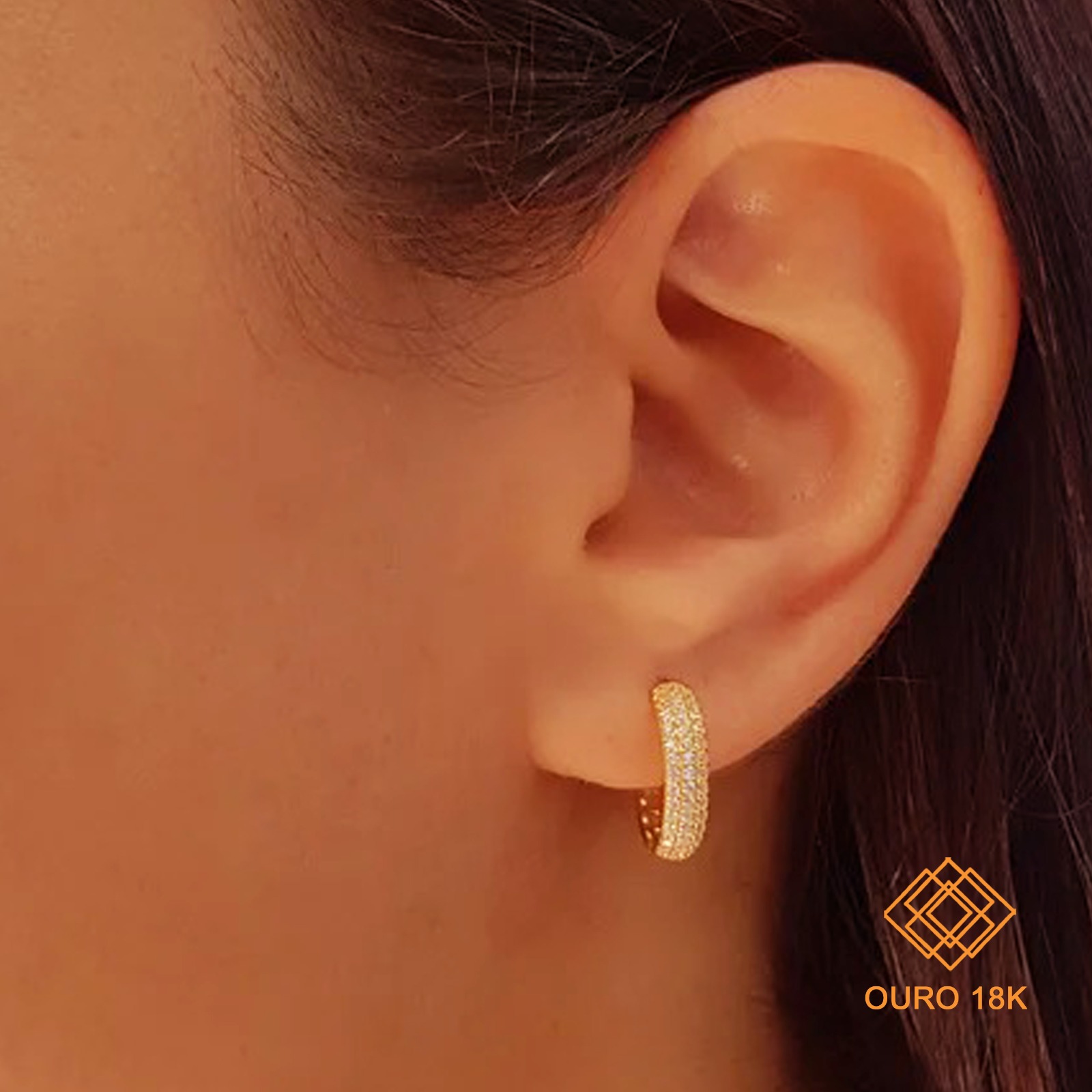 Brinco design argola, confortável e antialérgico, perfeito para te acompanhar em todas as atividades do seu dia a dia. Desfrute da qualidade do ouro 18k!