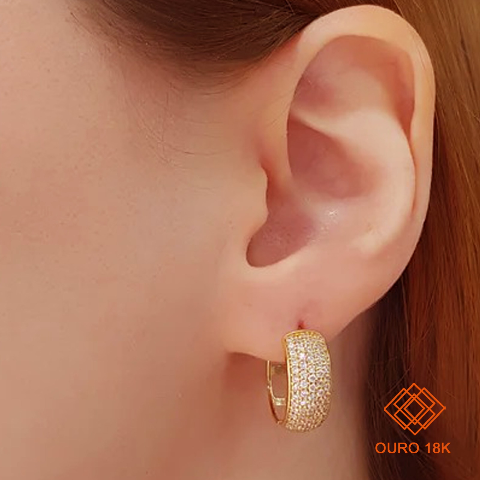 Brinco design argola, confortável e antialérgico, perfeito para te acompanhar em todas as atividades do seu dia a dia. Desfrute da qualidade do ouro 18k!