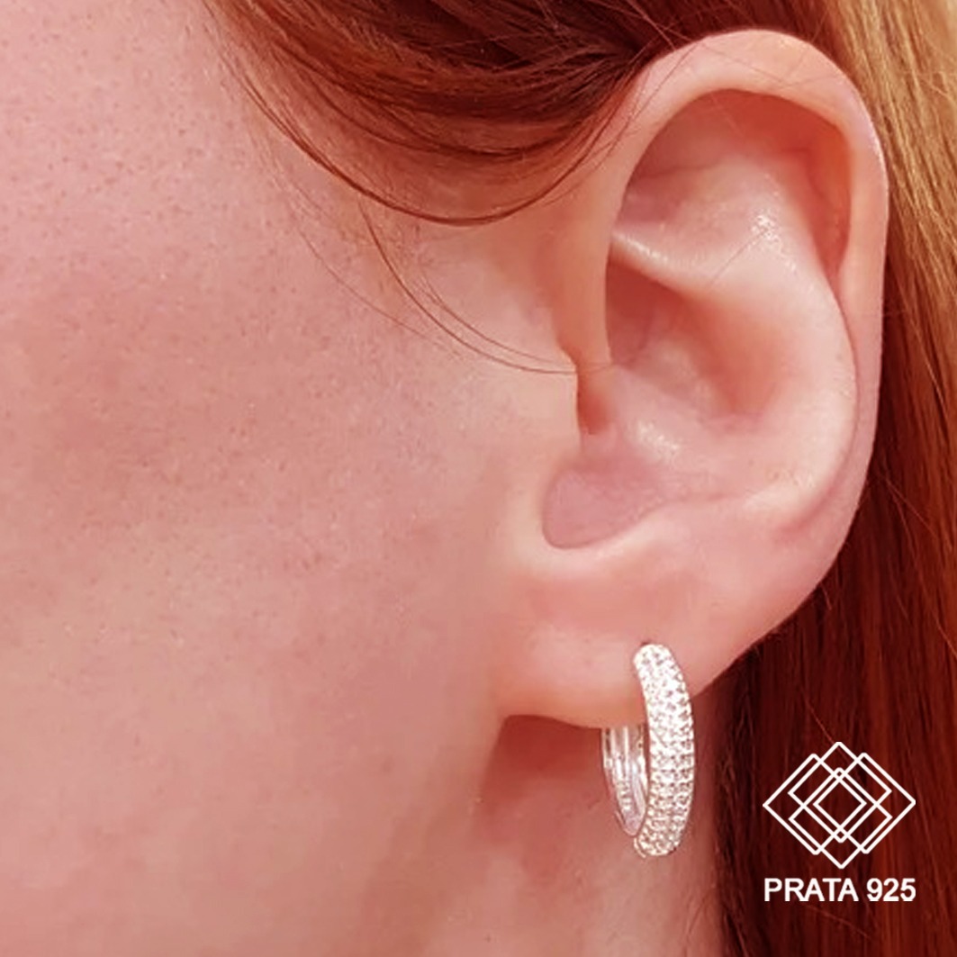 Brinco argola com elegante cravação de zircônias por toda sua extensão , confeccionado em prata 925, uma peça hipoalergênica que te garante conforto em todos os momentos
