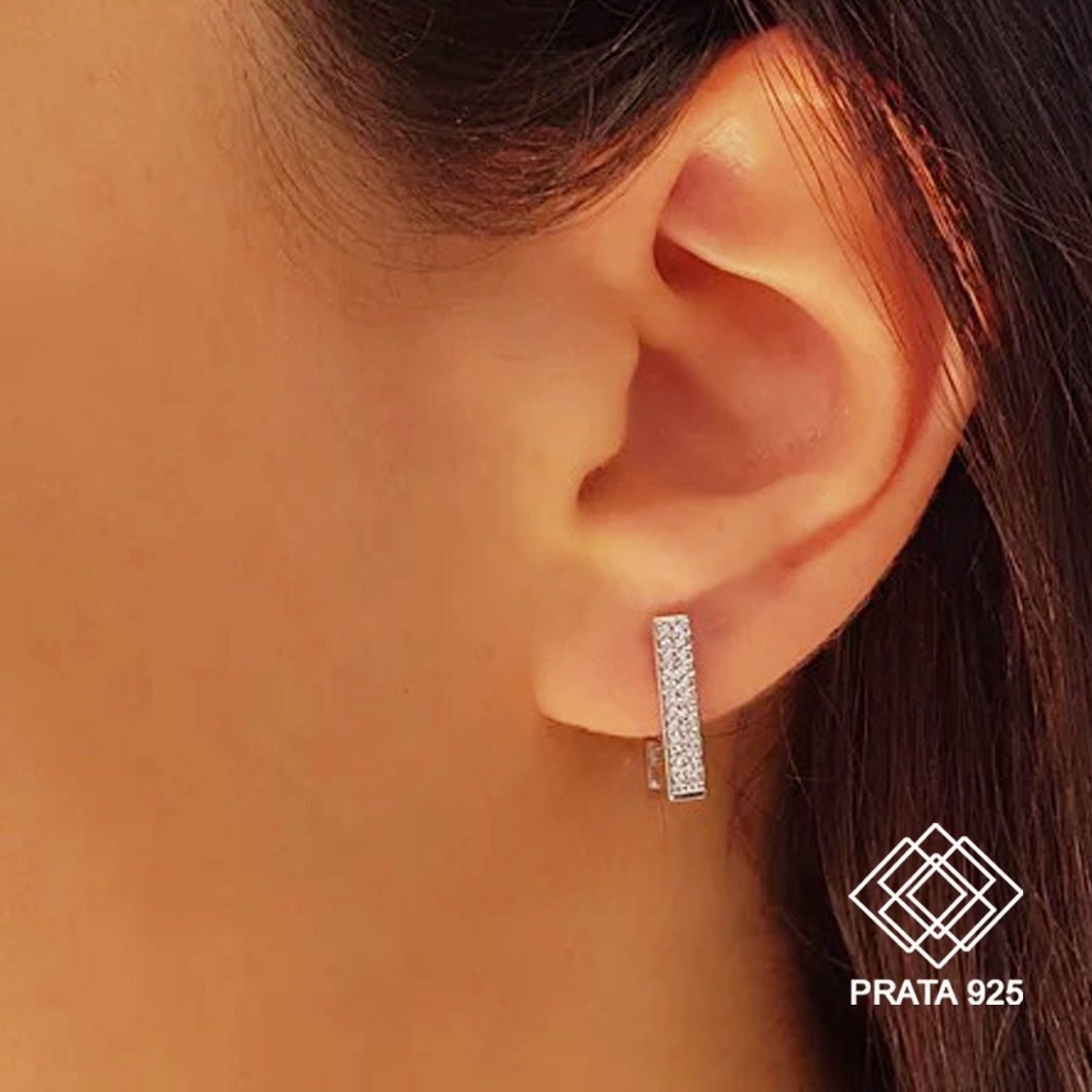 Brinco argola com elegante cravação de zircônias e confeccionado em prata 925, uma peça hipoalérgica que te garante conforto em todos os momentos.