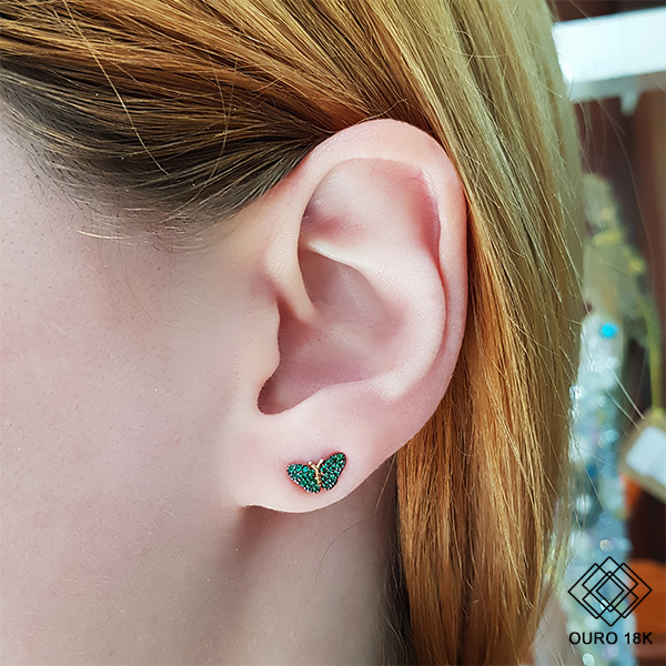 Brinco confortável e antialérgico, perfeito para te acompanhar em todos os momentos. Além da qualidade de uma joia confeccionada em ouro 18k, este brinco possui cravação de zircônias na cor verde. Com tamanho menor é perfeito para quem ama joias delicadas.