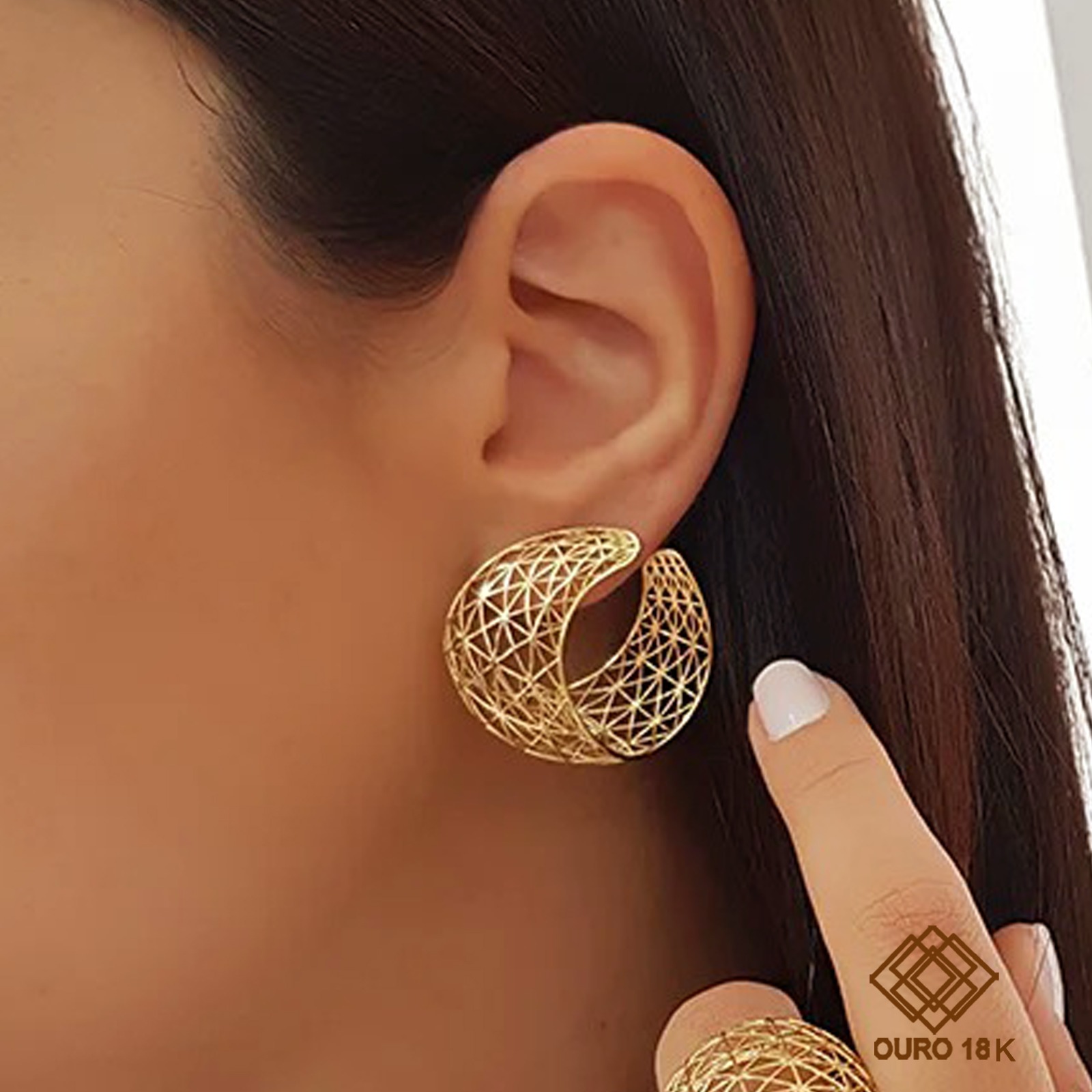 Brinco confeccionado em ouro 18k, este brinco possui elegante estrutura filigrana seu design vazado traz ainda mais presença para essa joia devido ao charmoso contraste do ouro com a pele. Uma joia sofisticada e luxuosa, perfeita para valorizar suas composições e te acompanhar em todos os momentos!