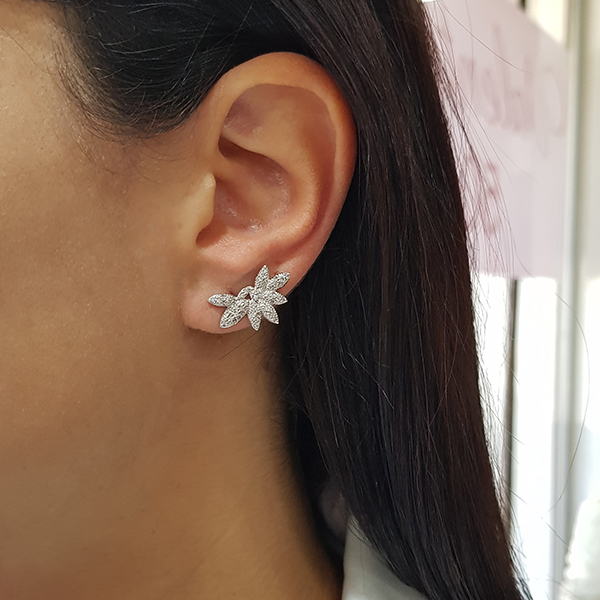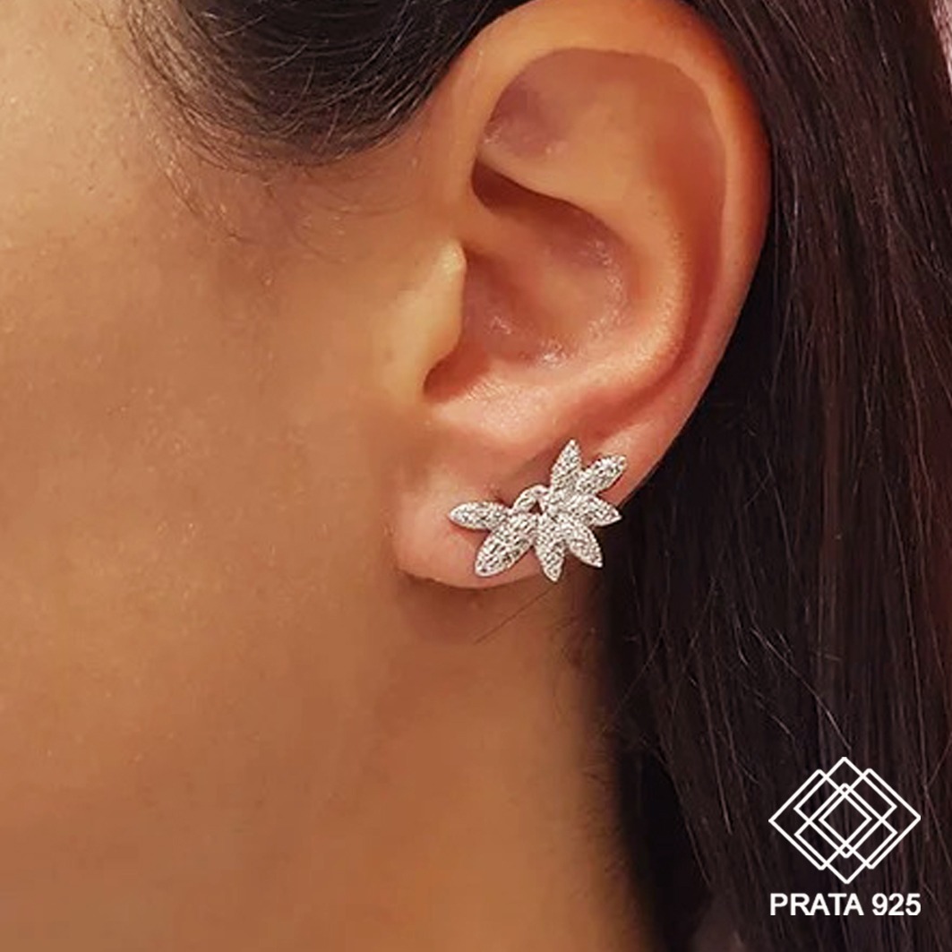 Uma joia delicada e sofisticada, inspirada nas formas da natureza. Seu design floral, com folhas cuidadosamente cravejadas, proporciona brilho intenso e elegante, valorizando o contorno da orelha com leveza e harmonia.