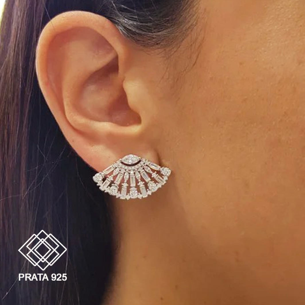 Elegante e sofisticado, o brinco leque é uma joia que se destaca pelo design moderno e cheio de brilho. Seu formato em leque transmite movimento e leveza, enquanto as zircônias lapidadas em formato baguete proporcionam um efeito de luminosidade único, refletindo a luz de forma intensa e refinada.