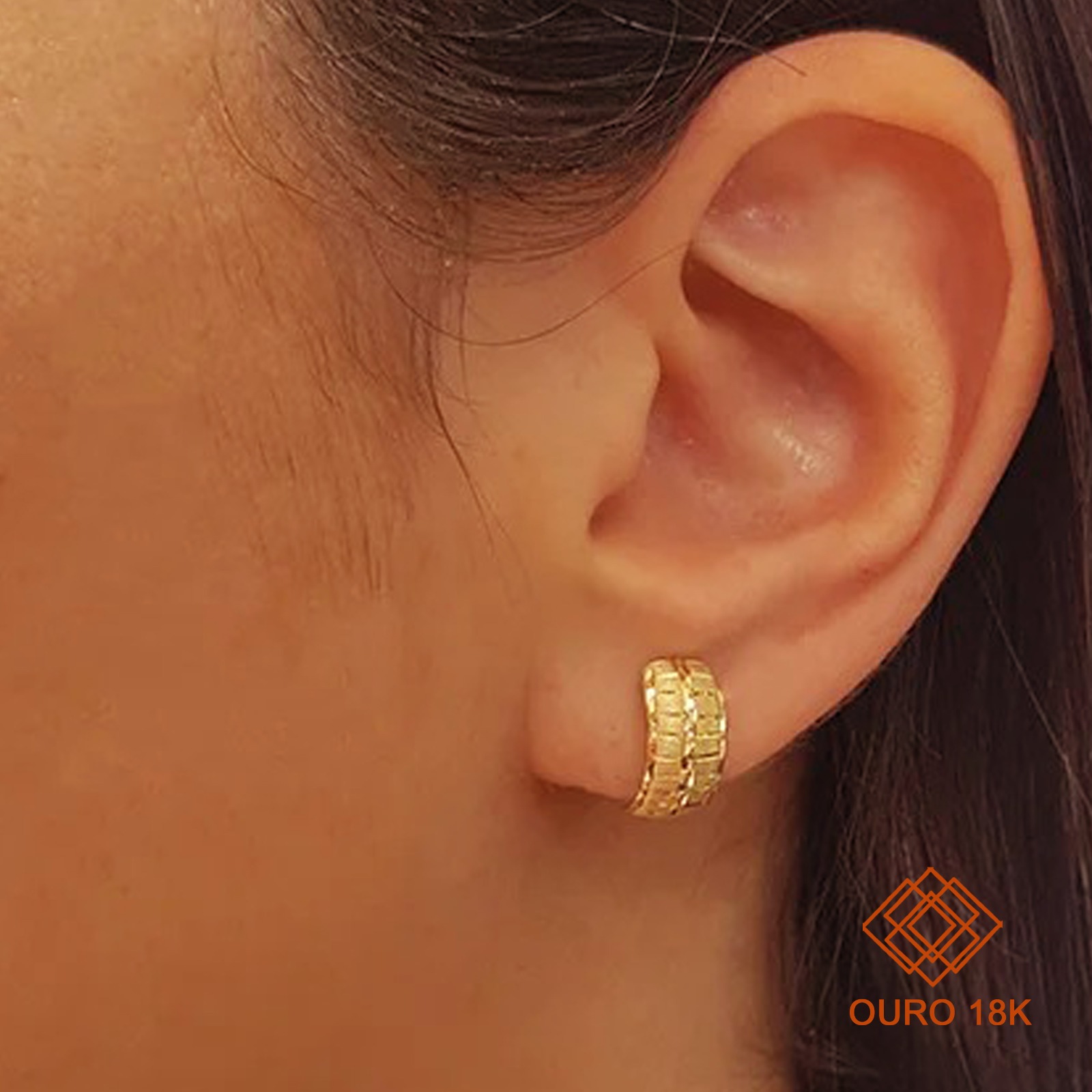Brinco design meia argola, confortável e antialérgico, perfeito para te acompanhar em todas as atividades do seu dia a dia. Desfrute da qualidade do ouro 18k!