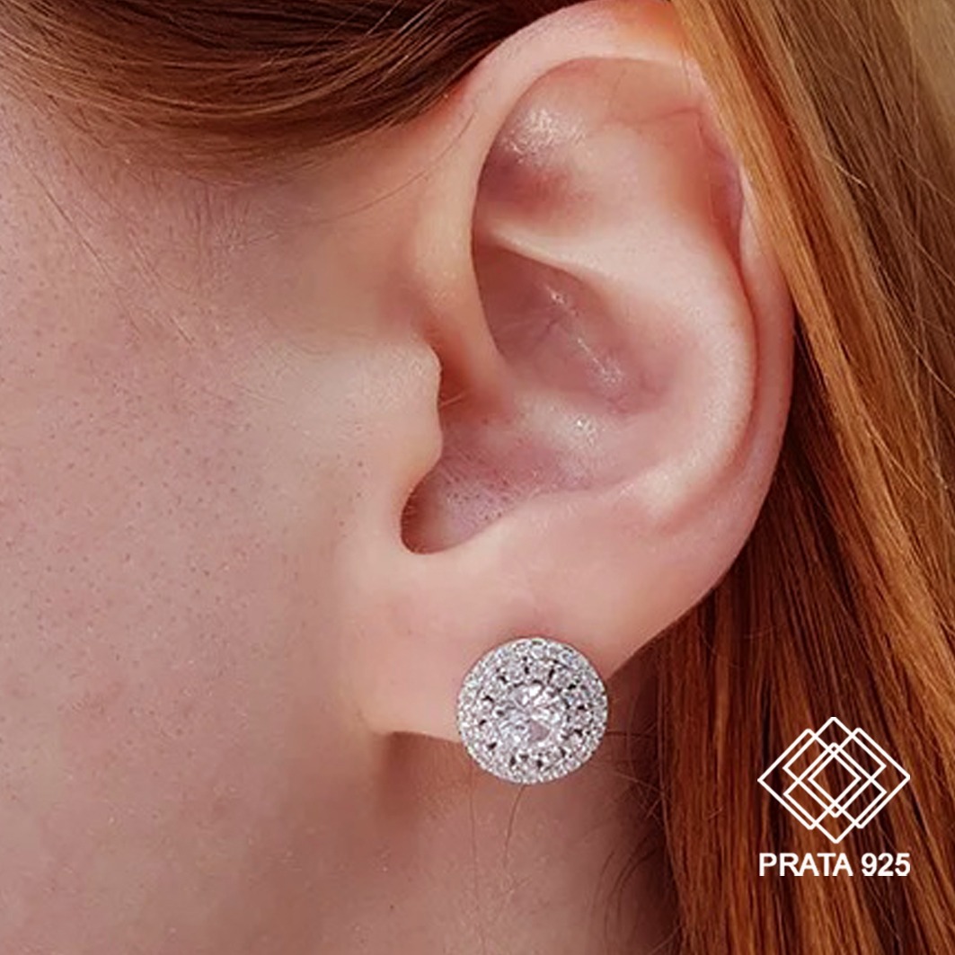 O brinco com elegante cravação de zircônias, confeccionado em prata 925, uma peça hipoalérgica que te garante conforto em todos os momentos