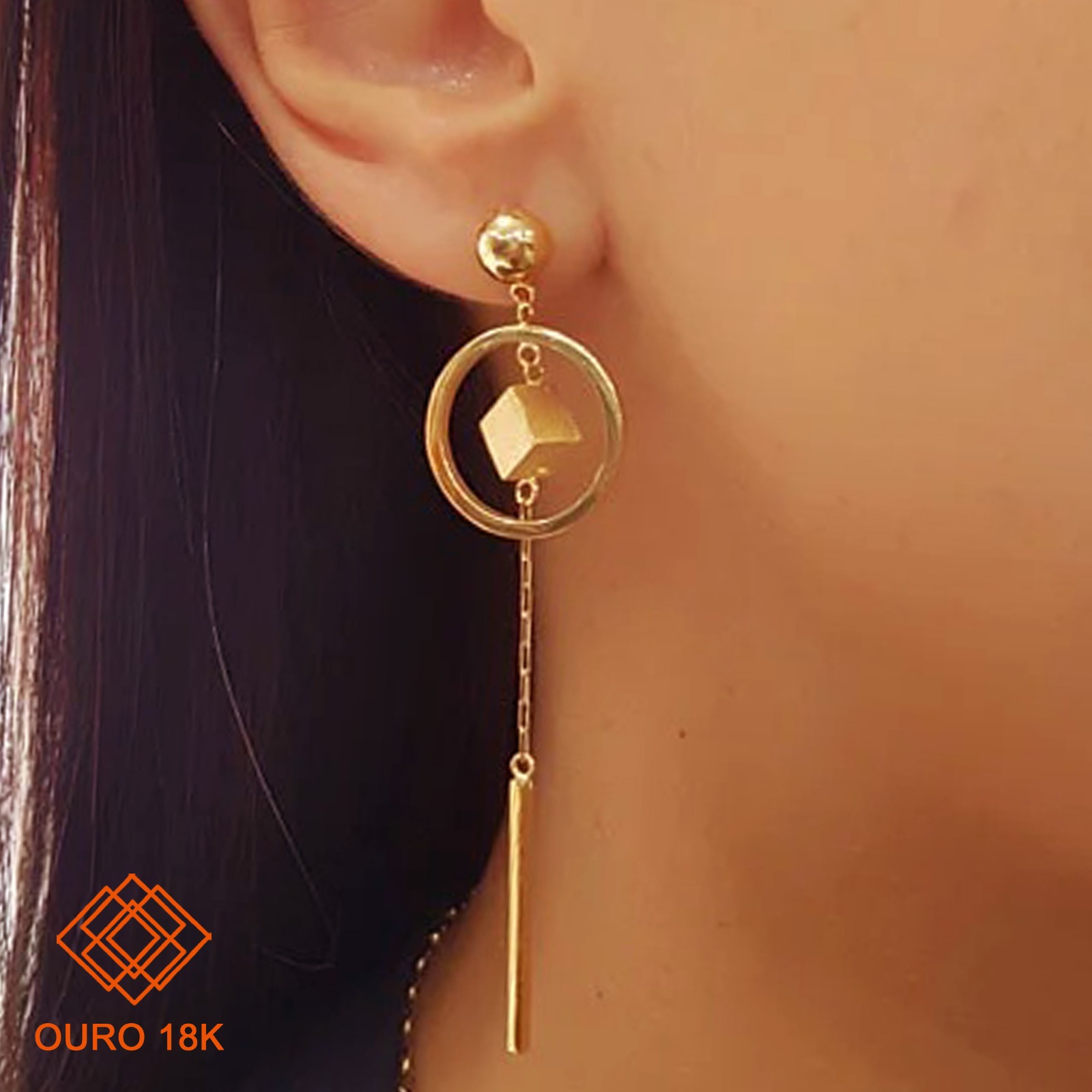 O brinco triângulos em ouro 18k é uma expressão de modernidade e elegância. Seu design alongado, composto por formas geométricas e estrutura vazada, cria uma estética contemporânea que adiciona movimento e charme ao visual.