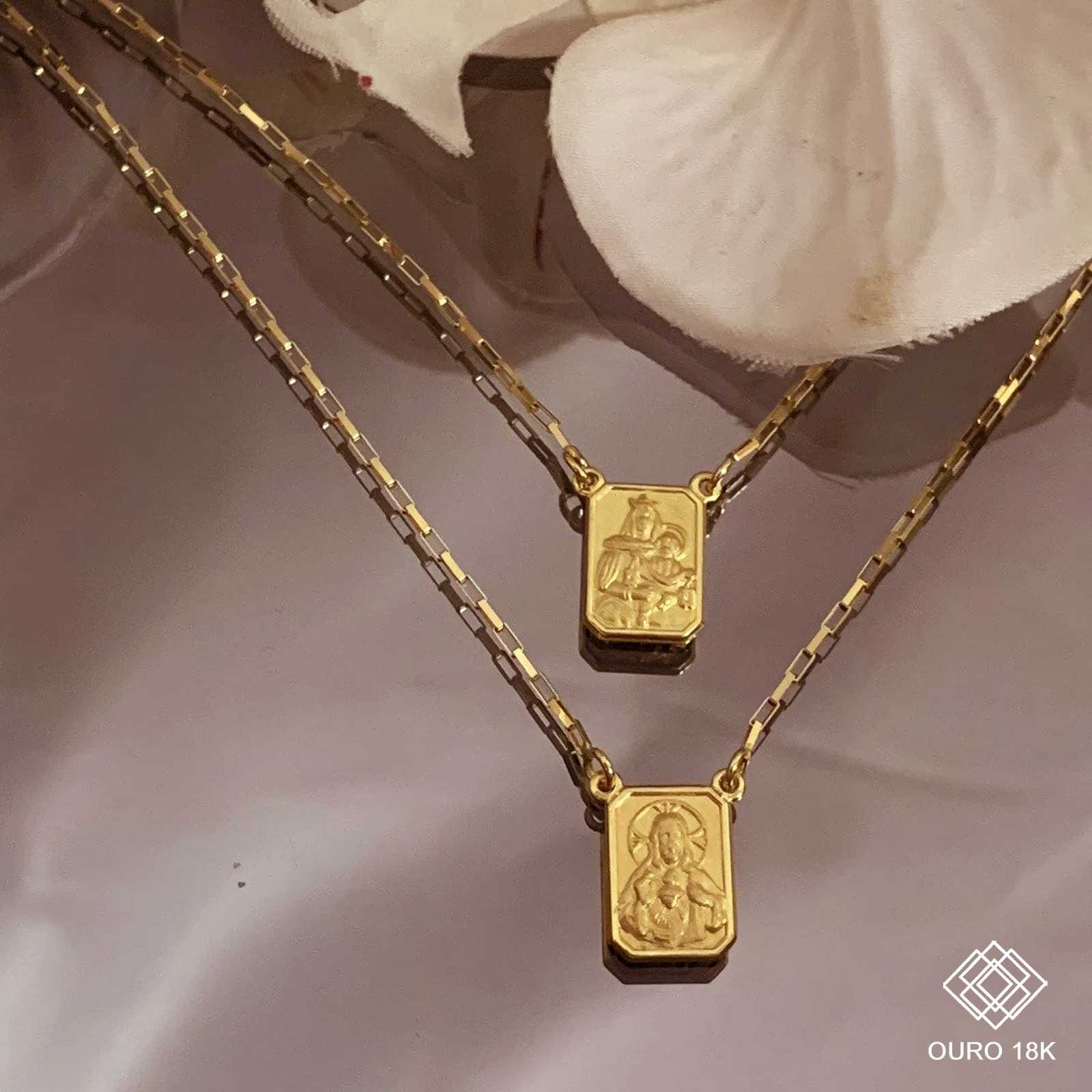 O escapulário em ouro 18k confere segurança e conforto e permanece como símbolo de devoção por onde estiver. Neste design a riqueza de detalhes proporciona uma joia de significado e sofisticação.