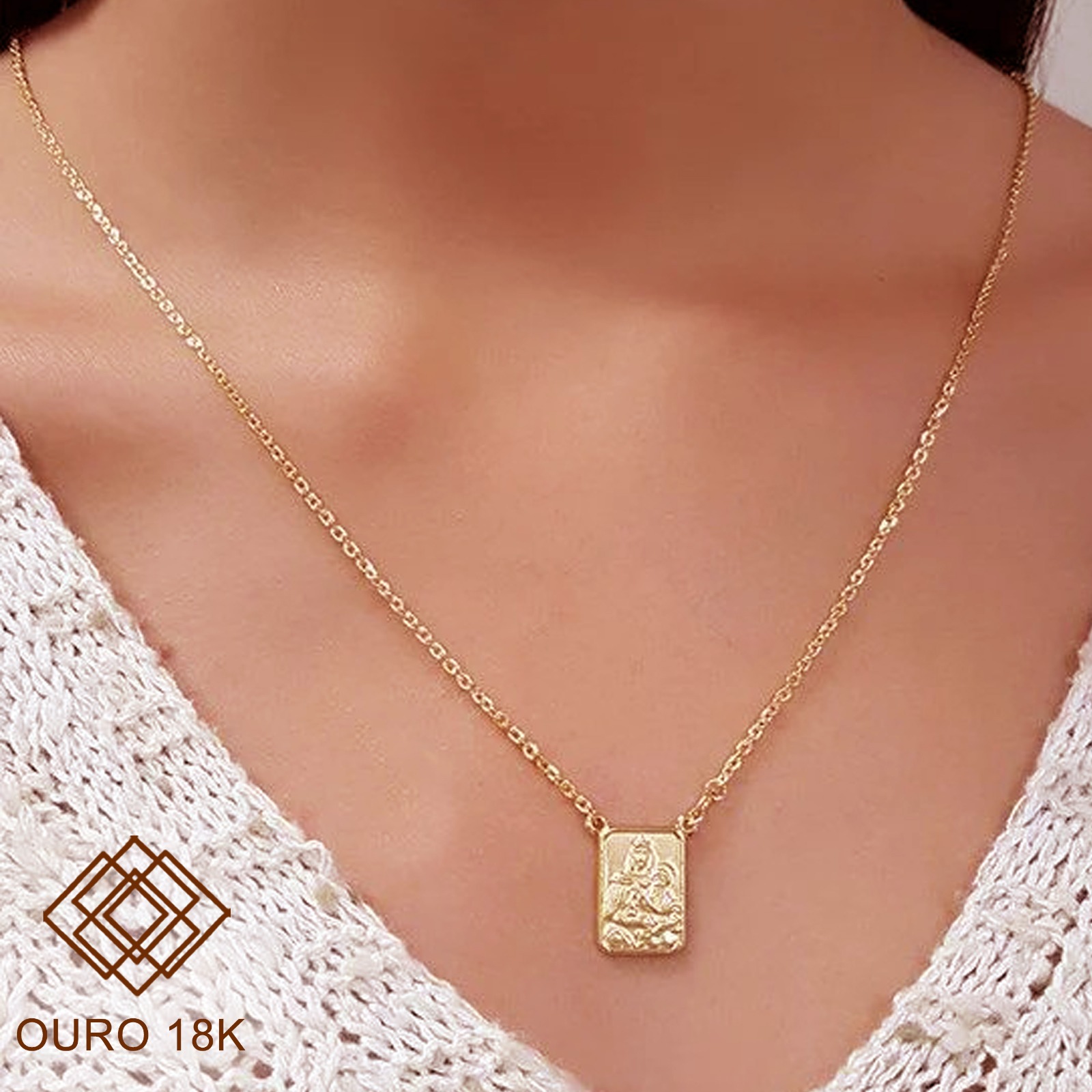 O escapulário em ouro 18k confere segurança e conforto e permanece como símbolo de devoção por onde estiver. Neste design a riqueza de detalhes proporciona uma joia de significado e sofisticação.