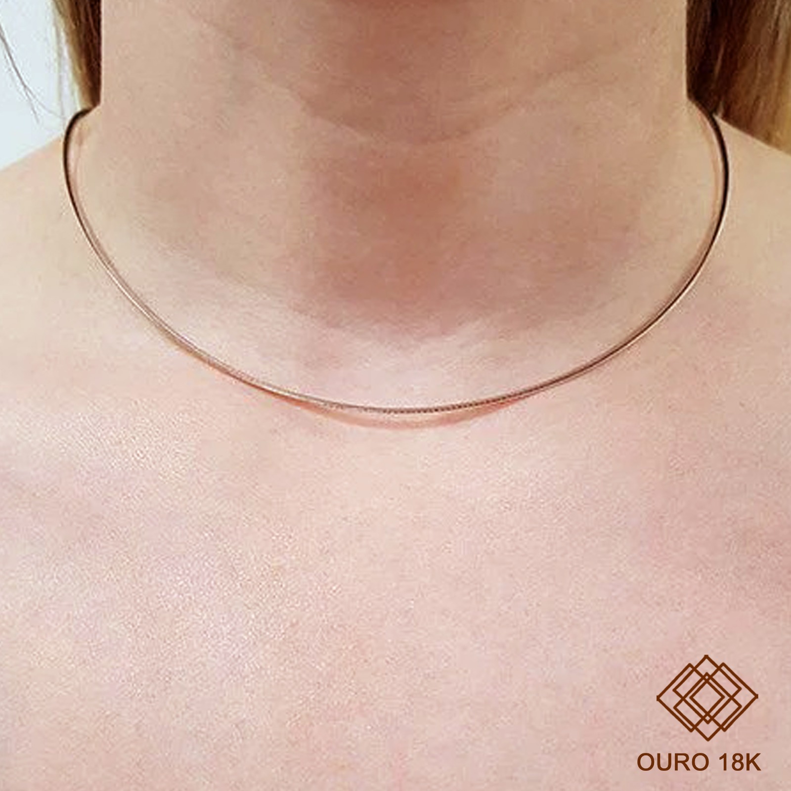 Essa Gargantilha formato Aro em Ouro 18k linda, pode ser usada dos dois lados, sendo um em Ouro Amarelo 18k e o outro Ouro Branco 18k. Ter uma peça versátil assim, é incrível!