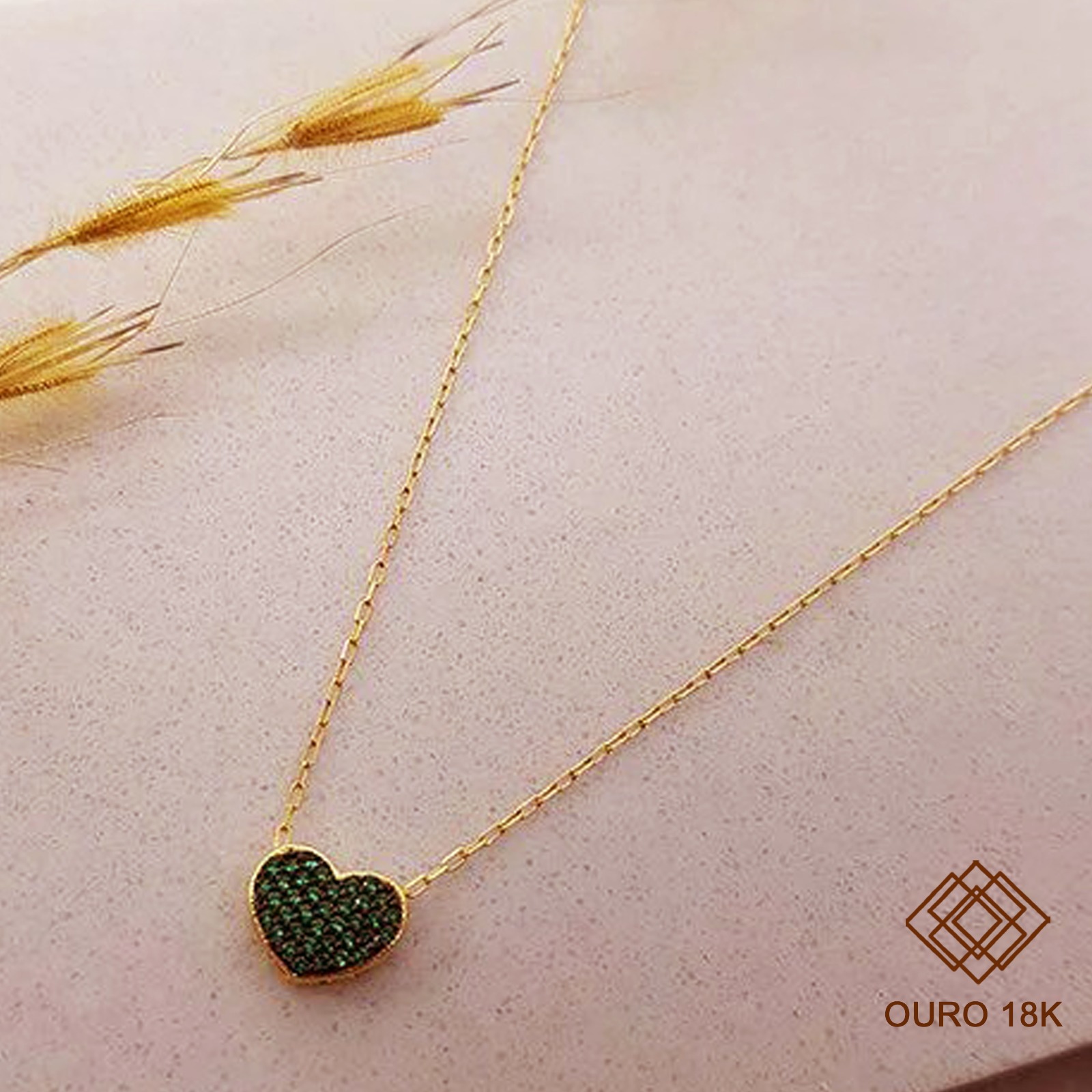 Um kit especial para quem ama joias românticas! Gargantilha em ouro 18k composta por malha e pingente coração, com cravação de zircônias verdes. Com o tamanho de 45 centímetros, esse é o kit perfeito para brilhar em todas ocasiões, resultando em beleza e destaque. Aproveite o valor especial, na compra do kit completo e garanta já o seu!