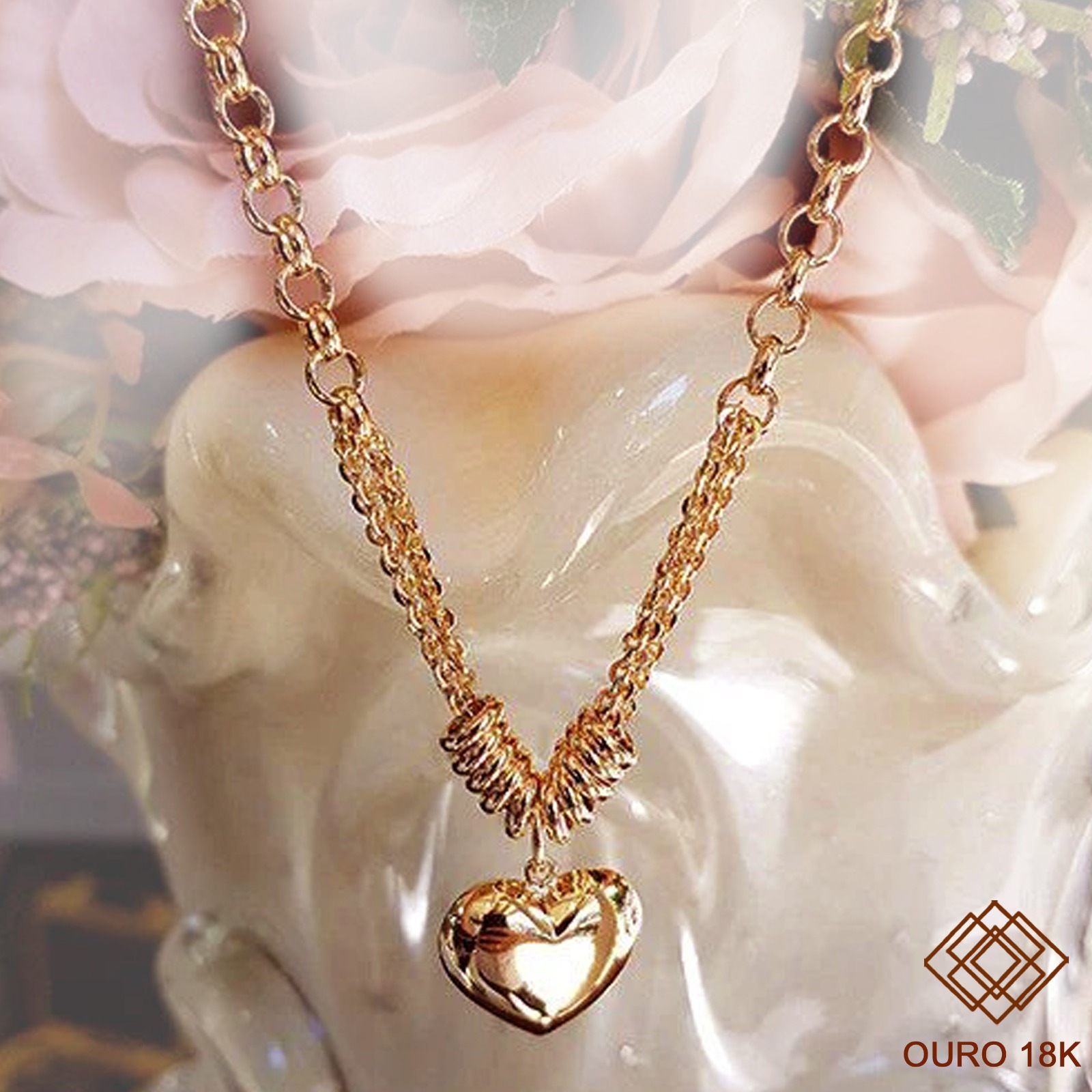 Esta gargantilha em ouro 18k composta por malha elo português e um elegante pingente em formato de coração! Sua estrutura de elos próximo ao pingente se destacada, traz atenção e proporciona beleza! Ideal para expressar romantismo juntamente com muito glamour.