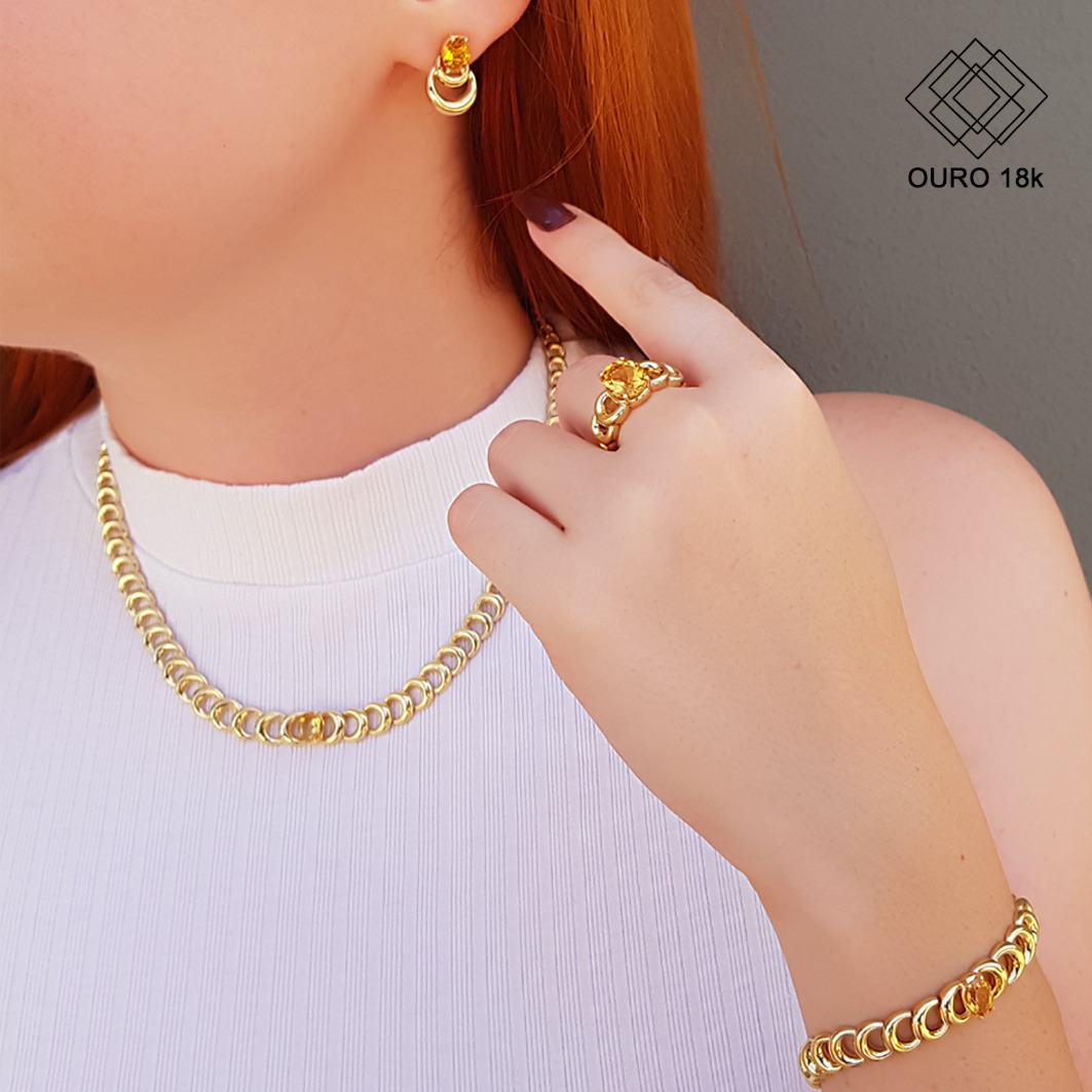 Este modelo de elos com design inovador, garante conforto e segurança aliado a elegância e beleza. Uma joia que combina a riqueza do ouro 18k com a beleza e vivacidade do citrino, resultando em uma peça que emana elegância e estilo.