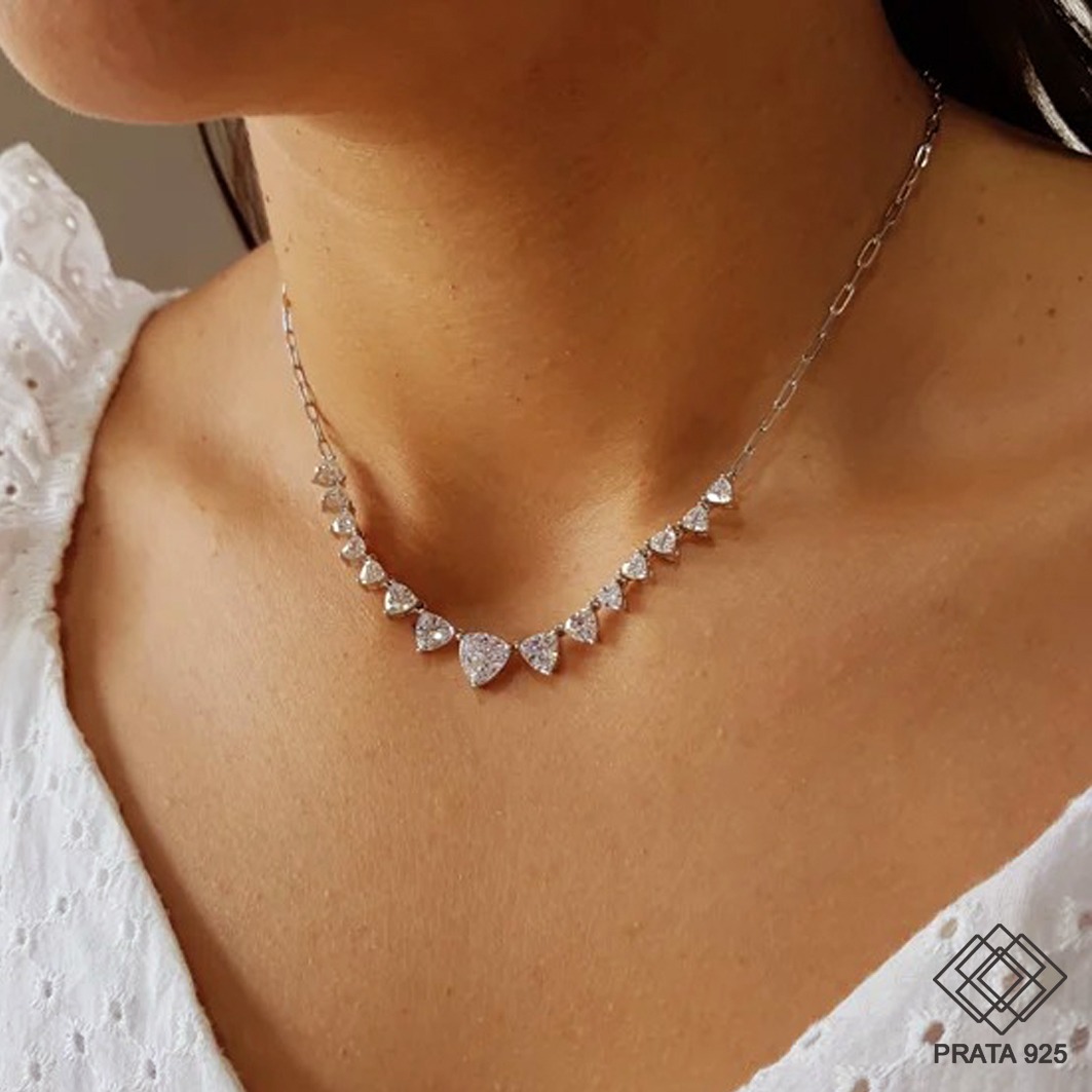 Uma gargantilha toda confeccionada em prata 925 e cravejada com zircônias, uma peça hipoalergênica que te garante conforto em todos os momentos